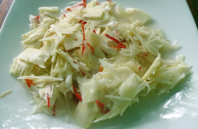 Thân khóm gọt xong thành củ hủ, rửa sạch, cho ra rổ, ngâm nước muối và luộc sơ trước khi chế biến. Nghe giản đơn nhưng từng công đoạn phải đúng cách. Luộc thiếu hoặc quá lửa, củ hủ khóm sẽ nhẫn đắng.