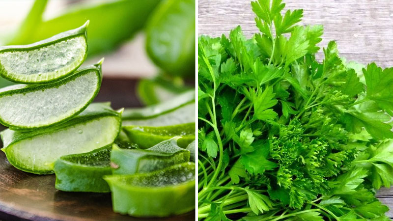 Mùi tây là loại thảo dược chứa nhiều vitamin C, flavonoid, luteolin. Các chất trên có công dụng chống viêm hiệu quả. Đối với những vết thương bầm tím hoặc vết cắt,... bạn có thể sử dụng một nắm mùi tây, rửa sạch để ráo nước, xay nhuyễn ép lấy nước bôi lên trực tiếp khu vực da bị bầm, hoặc bạn có thể đắp trực tiếp cả bã rau mùi tây lên trên.
