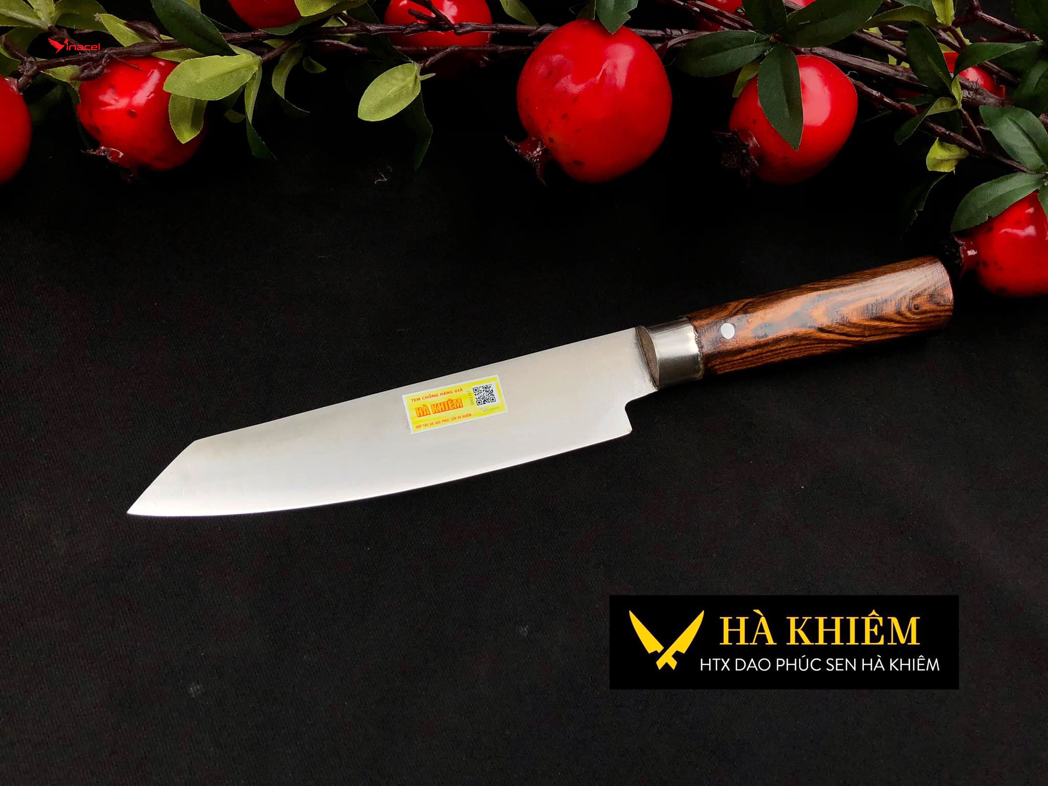 Dao được rèn thủ công hoàn toàn từ nhíp ô tô tuyển chọn kết hợp cùng chuôi dao từ gỗ cẩm chỉ quý hiếm bởi các nghệ nhân của Hợp tác xã Dao Phúc Sen Hà Khiêm - Đơn vị quy tụ những thợ rèn tay nghề cao với nhiều năm kinh nghiệm. Khi nói đến những làng nghề rèn đao nổi tiếng của Việt Nam, chắc hẳn ai cũng phải nhắc đến Làng dao Phúc Sen – một trong những trung tâm sản xuất đao bếp cao cấp lâu đời và nổi tiếng nhất cả nước.