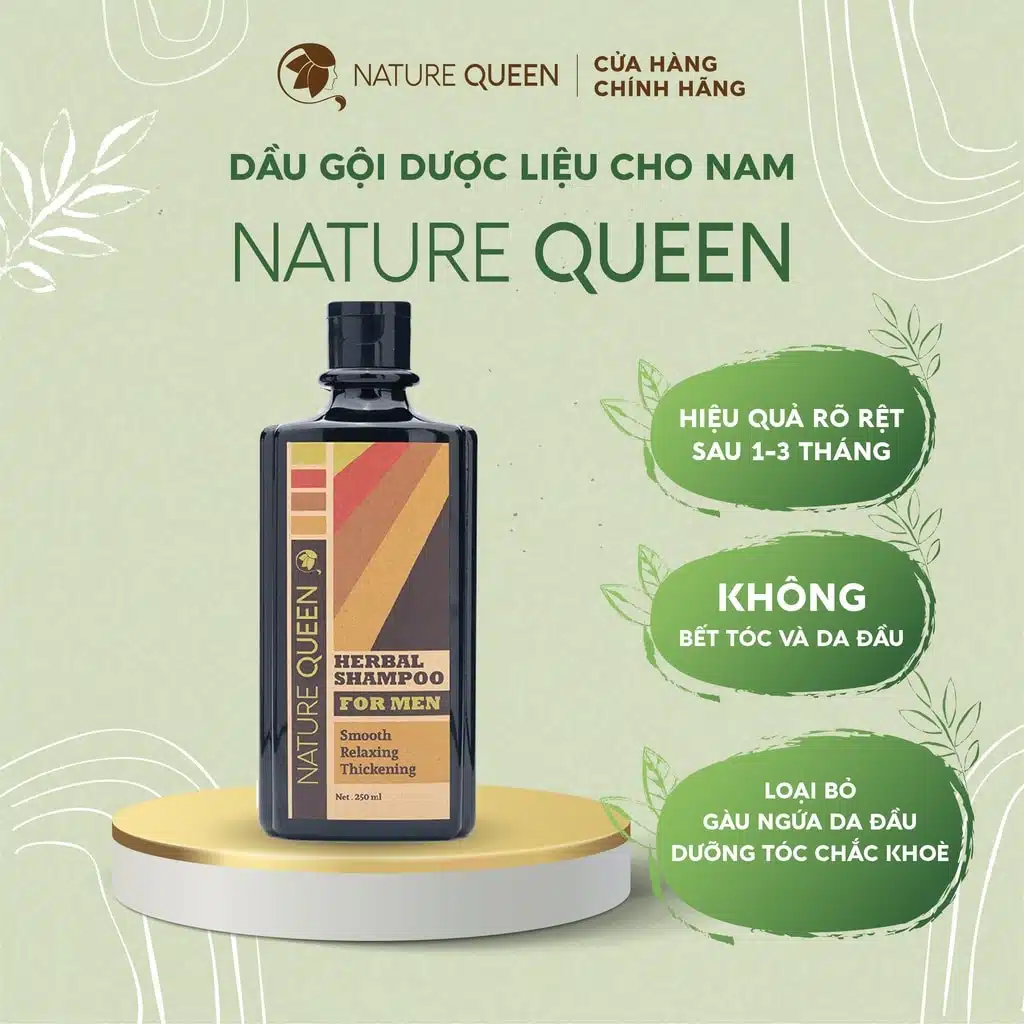 Dầu Gội Dược Liệu Cho Nam Nature Queen For Men giúp nuôi dưỡng tóc, giúp tóc chắc khỏe, mềm mượt và ngăn ngừa rụng tóc. Sản phẩm với thành phần thảo mộc tự nhiên phù hợp cho nam giới