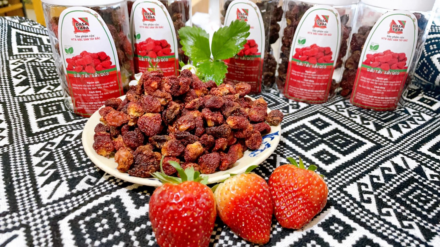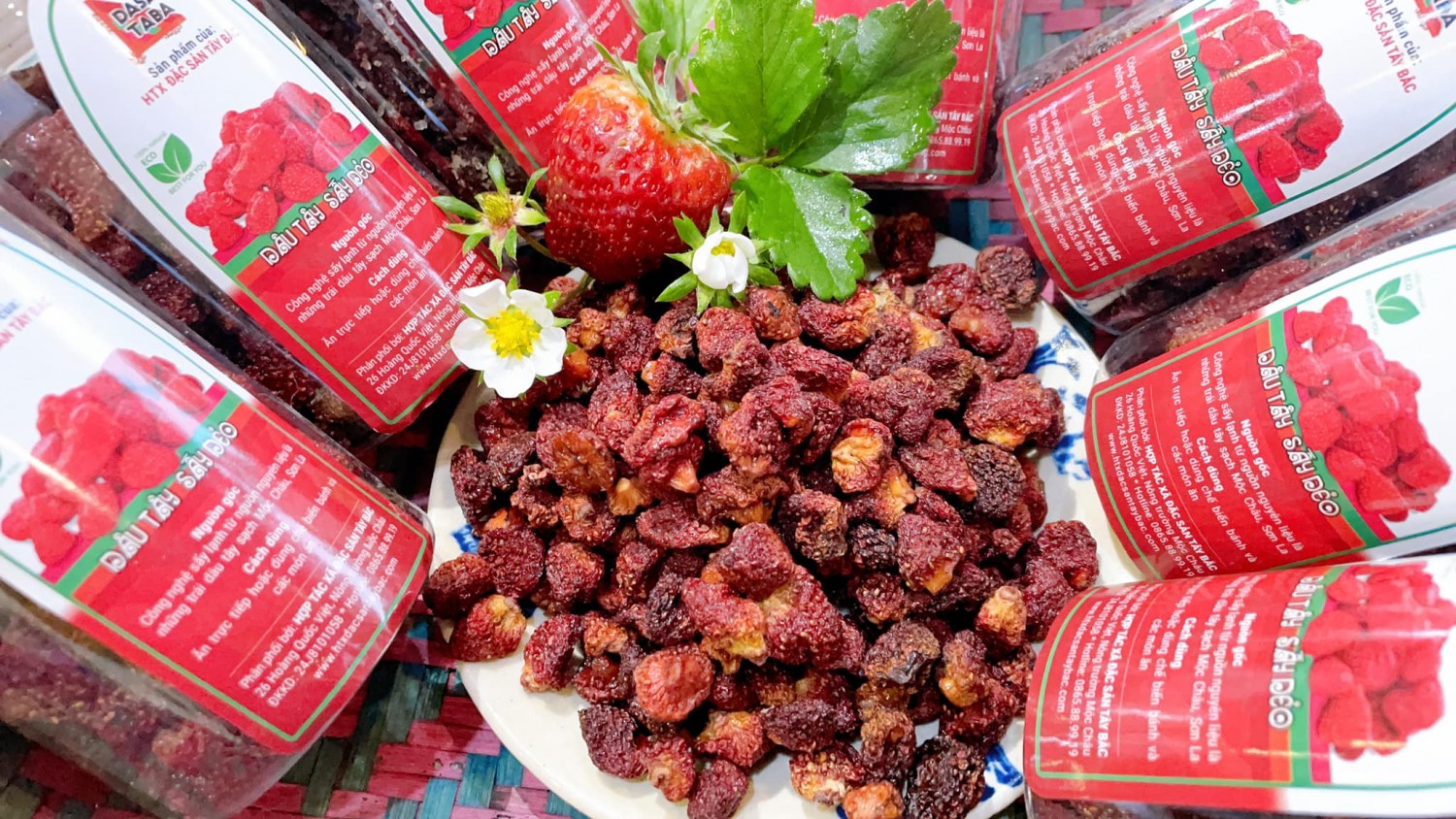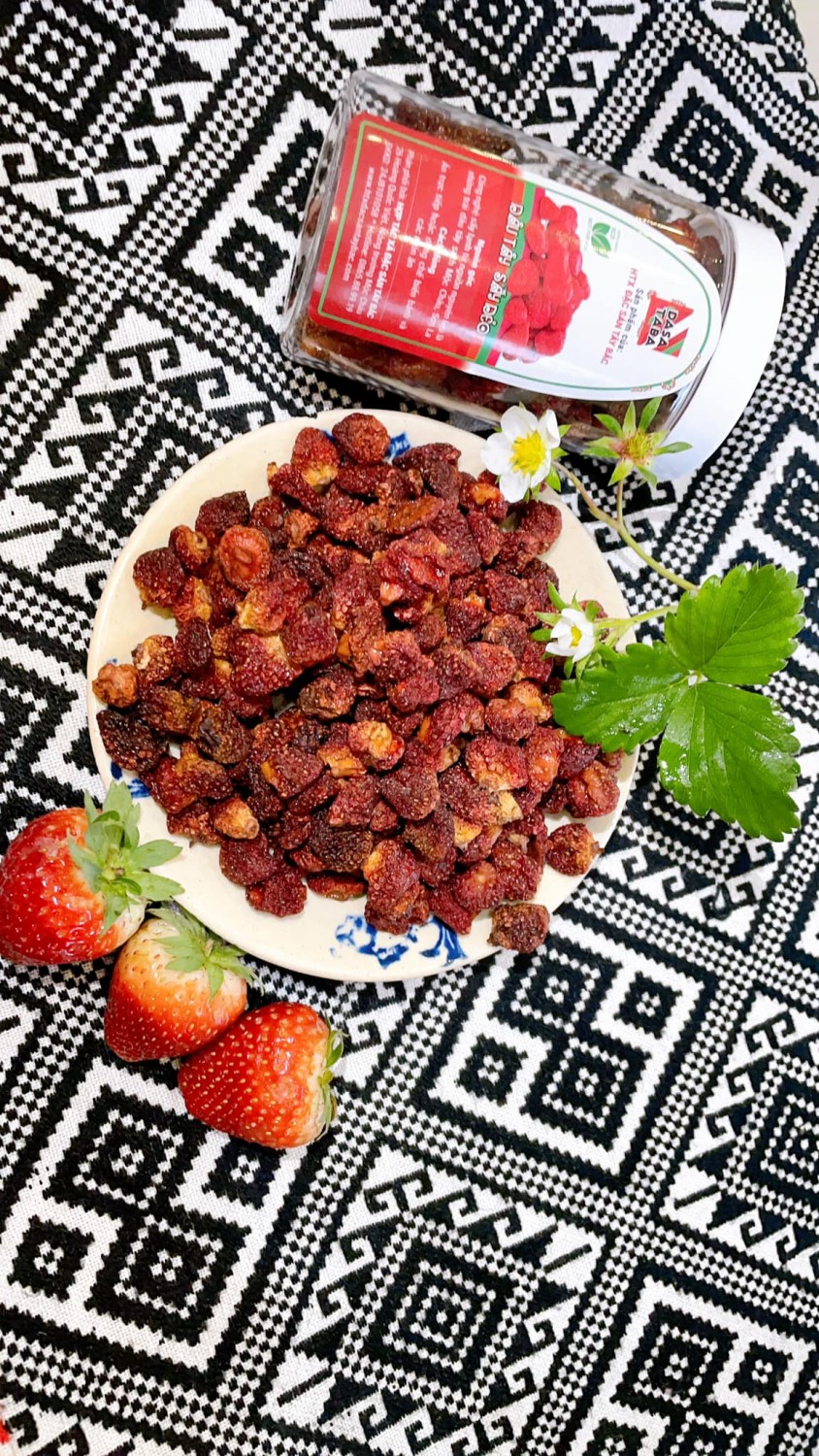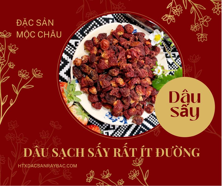 Dâu tây Mộc Châu được trồng là giống Hana của Nhật, quả ngọt, mềm, thơm. Ăn dâu tây tươi rất ngon, nhưng không phải ai cũng có điều kiện để vận chuyển tới nơi. Vì thế, HTX Đặc sản Tây Bắc đã sấy những quả dâu tây tươi ngon ấy thành dâu tây Mộc Châu sấy dẻo ít đường để đưa dâu tây đến với mọi người.