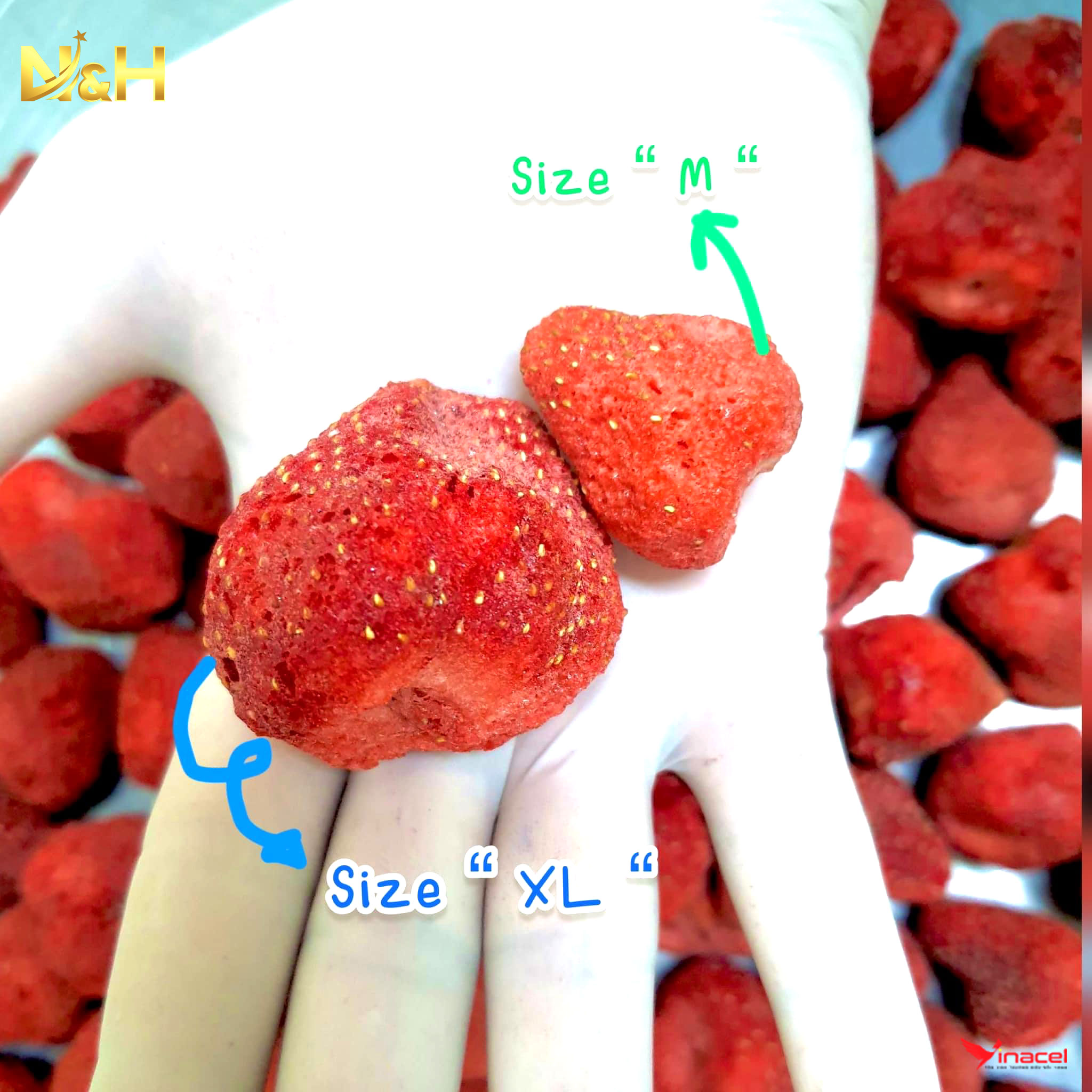• Dâu tây sấy giòn theo công nghệ sấy thăng hoa giữ màu sắc tự nhiên và giữ 90-95% chất dinh dưỡng.