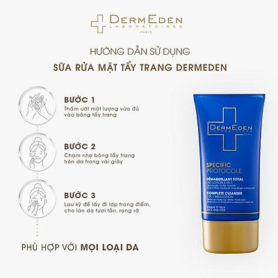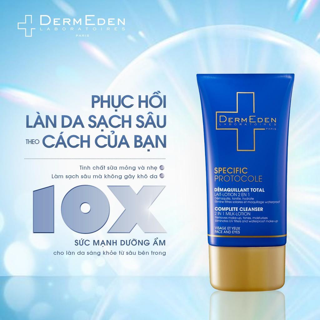 DermEden Specific Protocole Complete Cleanser – Sửa rửa mặt làm sạch và phục hồi độ ẩm cho da với những thành phần dịu nhẹ giúp bụi bẩn, bã nhờn được làm sạch dễ dàng nhanh chóng. Đặc biệt còn thích hợp cho vùng da nhạy cảm quanh mắt, an toàn khi sử dụng. Sản phẩn phù hợp với mọi loại da, kể cả vùng da quanh mắt và da nhạy cảm.