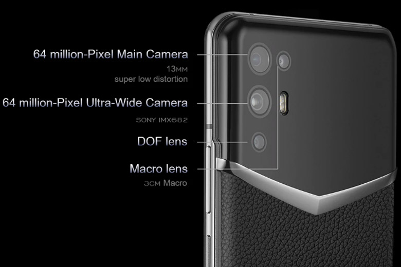 Điện thoại iVERTU 5G Iron Black Alli được trang bị cụm bốn camera ở phía sau. Mang lại cho người dùng những hình ảnh chân thực, sắc nét với cảm biến chính 64MP, cảm biến góc siêu rộng 64MP, cảm biến macro 5MP và cảm biến đo độ sâu 2MP.