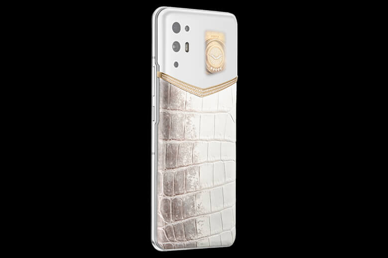 Phần da của iVERTU 18K Gold with Diamonds Himalaya Alligator Leather được chế tác từ loại da cá sấu trắng Himalaya sống trên dòng sông Nile. Đây là một loại vật liệu rất quý hiếm, rất khó để tìm được. Kết hợp với sự khéo tay, tỉ mỉ và dày dặn kinh nghiệm của nghệ nhân tạo nên thiết bị này, khiến cho điện thoại mang giá trị đẳng cấp từ hiệu năng đến thiết kế.
