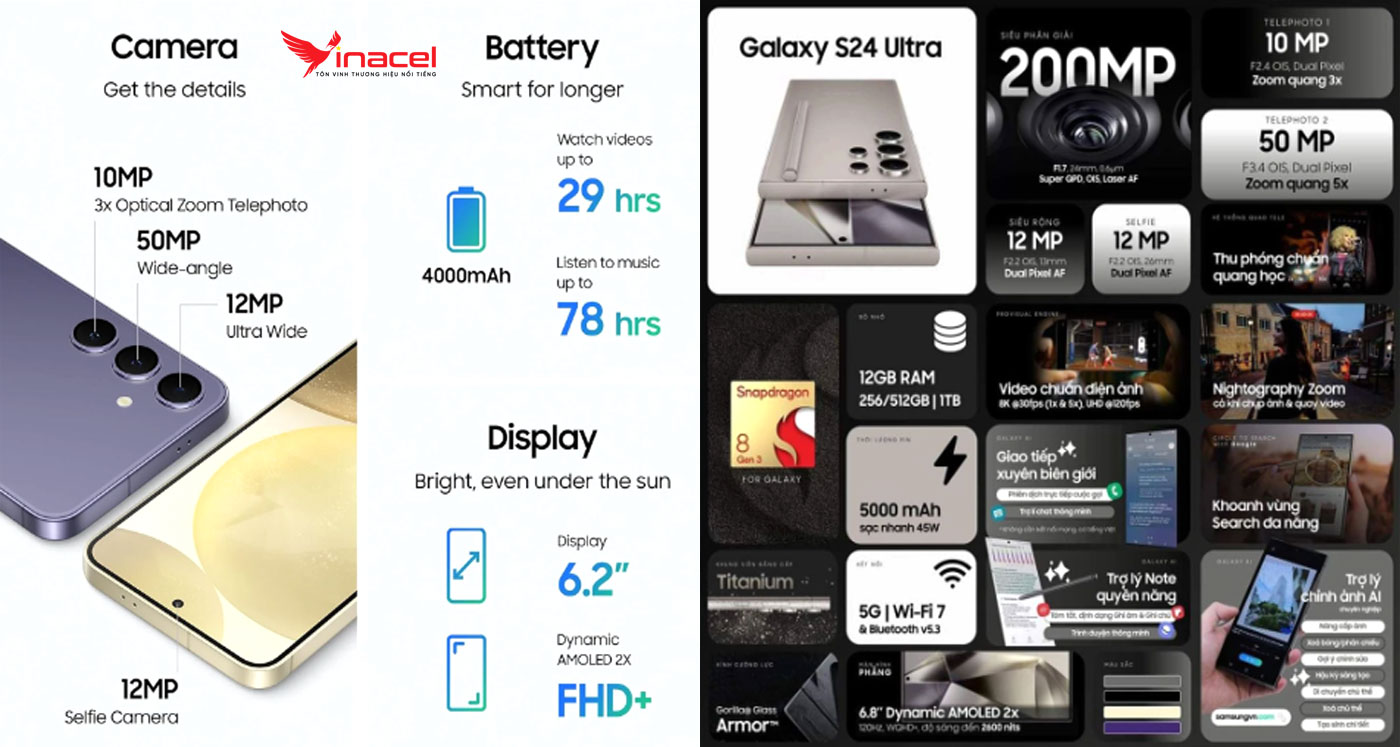 • Samsung vừa tung ra thị trường với Samsung Galaxy S24 Series với 3 phiên bản: S24/S24 Plus/ S24 Ultra mở ra kỷ nguyên mới với Galaxy AI cao cấp. Đây chính là bước đánh dấu tên tuổi của Samsung trên thị trường công nghệ điện thoại.