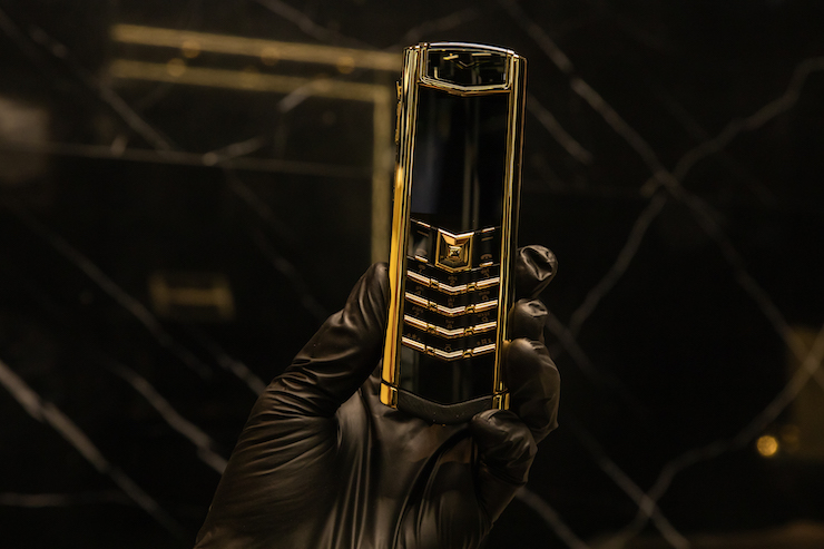 Vertu Signature V Pure Black Full Gold là một tác phẩm thời trang đầy mê hoặc đến từ những người thợ thủ công lành nghề và phải trải qua nhiều quy trình kiểm tra kỹ lưỡng trước khi đến tay người dùng. Đây là một chiếc điện thoại thể hiện đẳng cấp thượng lưu của người dùng khi được hoàn thiện từ những nguyên liệu quý hiếm như platin, vàng và kim cương.