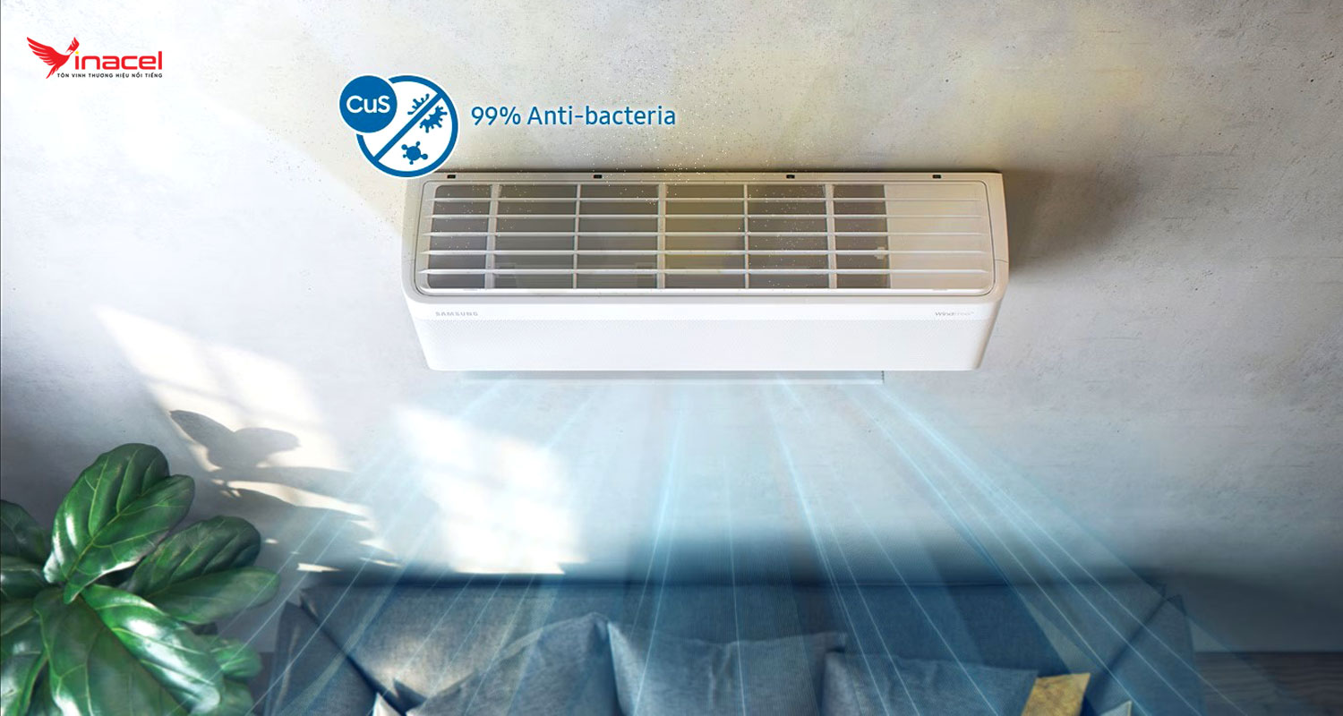 Lọc đến 99% vi khuẩn, dễ dàng vệ sinh, loại bỏ vi khuẩn lây qua đường không khí. Giữ cho máy điều hòa hoạt động hiệu quả mà không tốn quá nhiều công sức bảo trì. Bộ lọc Phân tử Đồng kháng khuẩn nằm phía trên dàn lạnh nên dễ dàng tháo gỡ và vệ sinh. Lưới lọc dày giữ cho dàn trao đổi nhiệt luôn sạch sẽ.