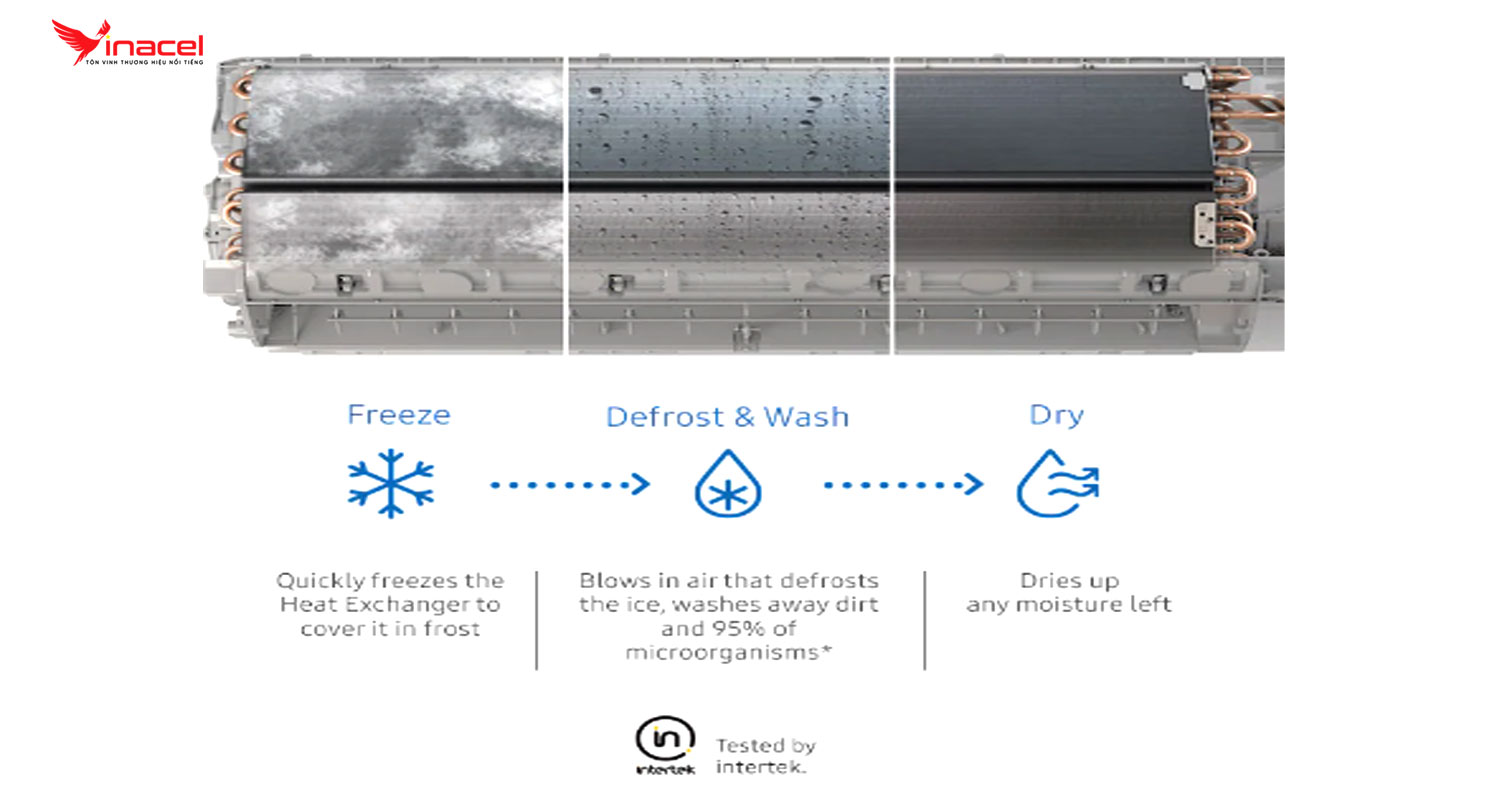 - Freeze Wash làm sạch dàn lạnh tối ưu, loại bỏ 95% bụi bẩn và vi khuẩn, duy trì hiệu quả làm lạnh.
