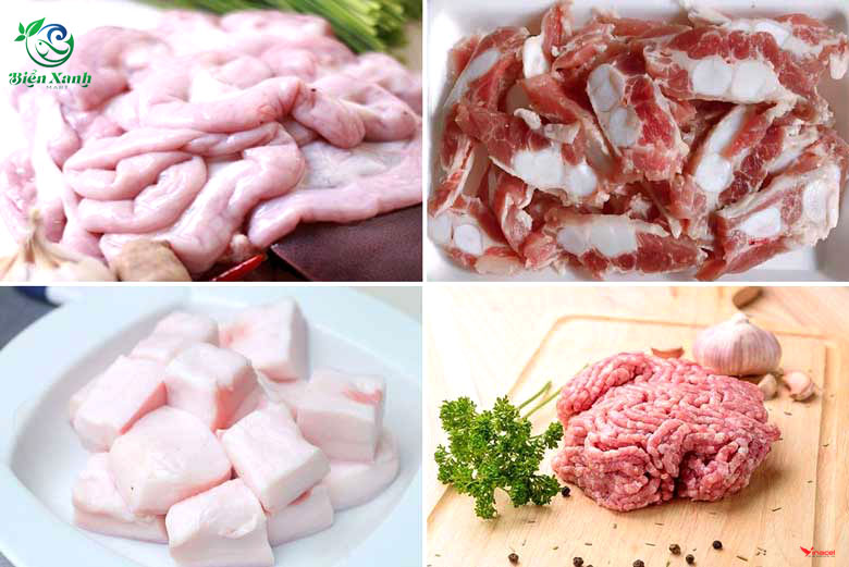 • Thịt lợn xay: Nên chọn thịt nạc vai hoặc thịt ba chỉ có lẫn một ít mỡ để dồi sụn không bị khô khi chế biến.