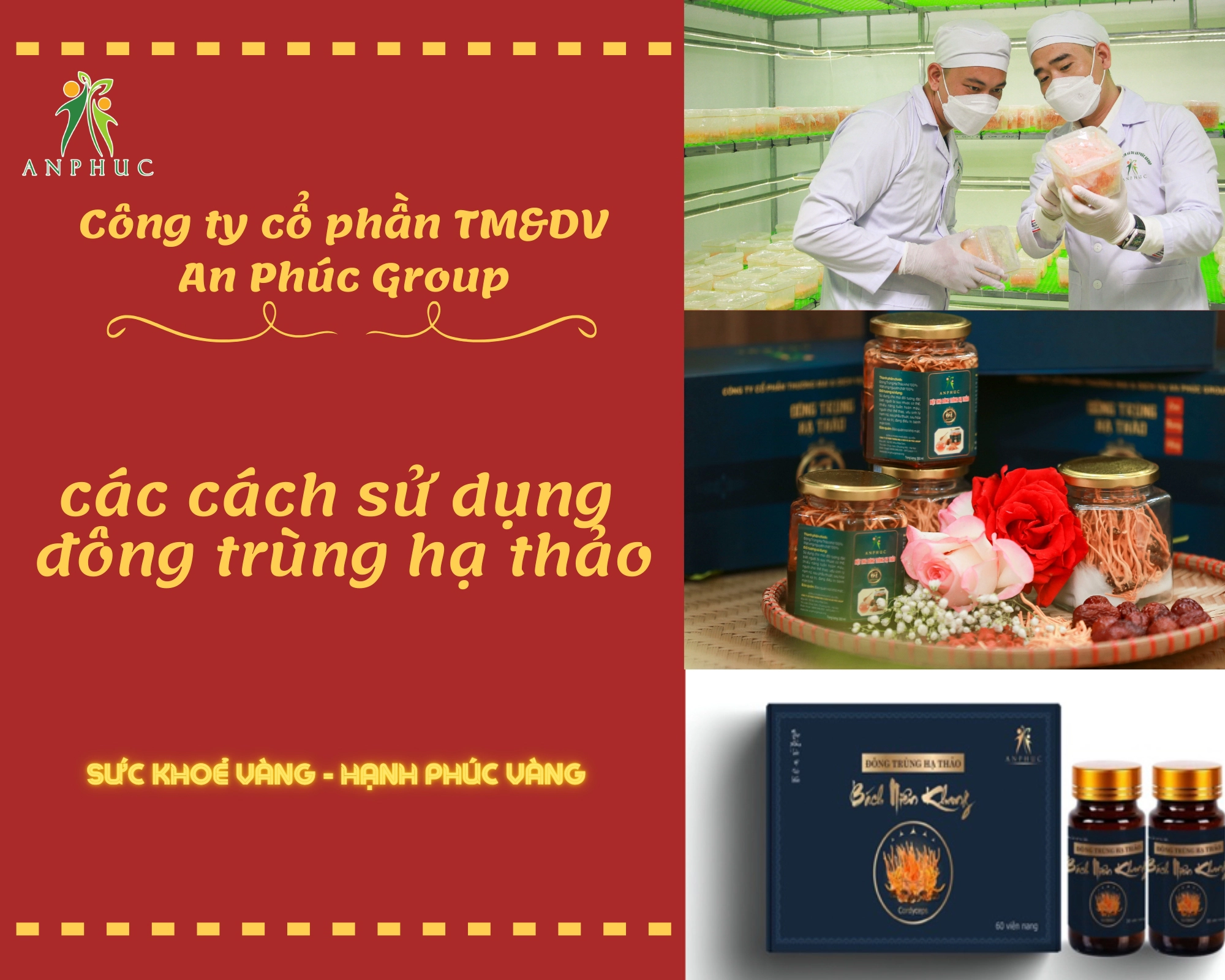 Hiện tại, công ty Cổ phần Thương mại & Dịch vụ An Phúc Group đang sản xuất và phân phối các sản phẩm như đông trùng hạ thảo dạng phôi tươi thành phẩm, đông trùng hạ thảo sấy khô, đông trùng hạ thảo ngâm mật ong, đông trùng hạ thảo ngâm rượu, Bách Niên Khang...