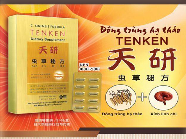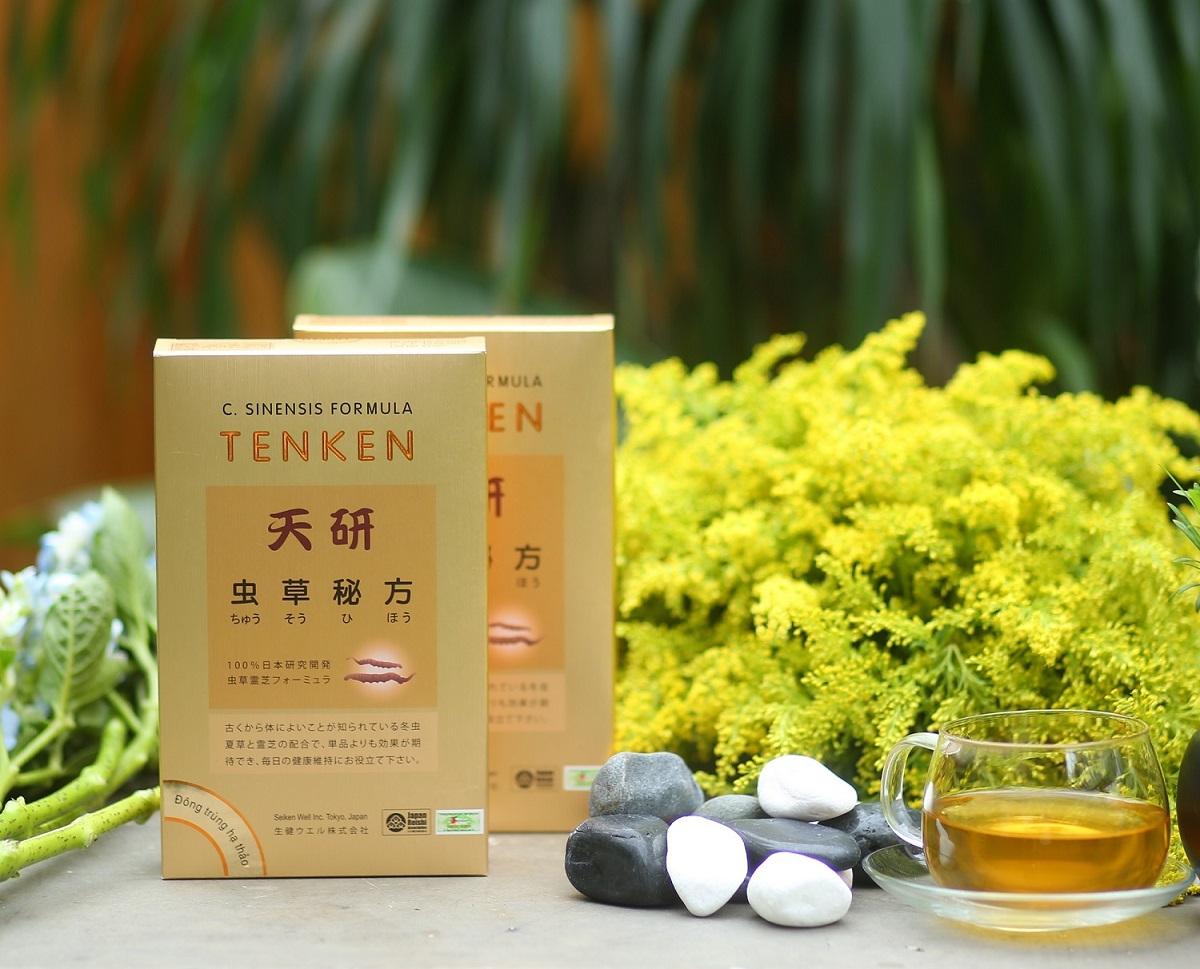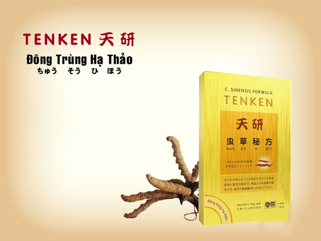 Đông trùng Hạ thảo Tenken là loại thực phẩm chức năng dạng bột đóng gói trong viên nang trong suốt dùng để uống trực tiếp. Sản phẩm được sản xuất dựa trên hai nguyên liệu mà Viện nghiên cứu Seiken Well Inc. của Nhật Bản nuôi trồng nhân tạo, bao gồm đông trùng hạ thảo và nấm linh chi là hai loại thượng dược quý trong y học cổ truyền Trung Quốc. Đông trùng Hạ thảo Tenken có công dụng hồi phục và bồi bổ cơ thể, dùng điều dưỡng sau cơn bệnh, tăng cường sức đề kháng.