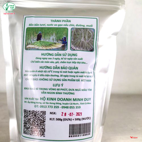Dưa bồn bôn sản xuất tại hộ kinh doanh Minh Duy, được làm từ bồn bồn tươi được trồng và thu mua ngay vùng Cái Nước, Cà Mau. Với phương pháp truyền thống, dưa bồn bồn Minh Duy đảm bảo mang lại chất lượng tuyệt hảo với hương vị thơm ngon đậm chất quê Cà Mau.