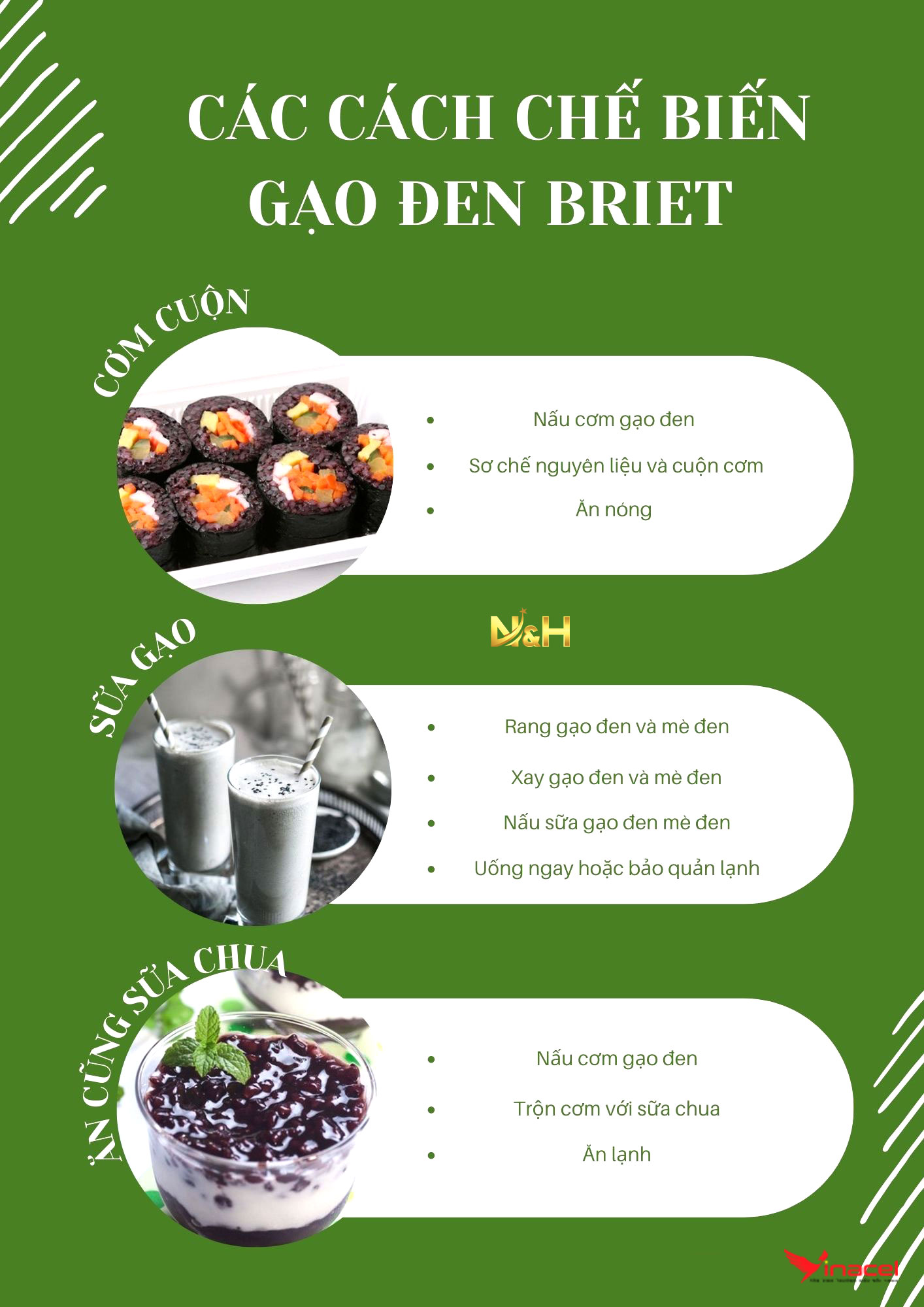 • Gạo đen Briêt khi nấu không cần phải ngâm nên giữ được hết lượng dinh dưỡng và lượng cám.