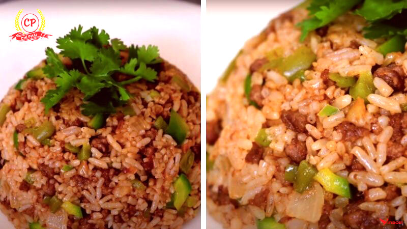 Gạo thơm RVT làm món cơm chiên nóng hổi với bò bằm thơm ngon, chứa đầy đủ chất dinh dưỡng cần thiết cho cơ thể. Cơm chiên bò bằm với vị ngon, hương thơm đặc biệt và cơm mềm sẽ kích thích vị giác của các bạn.