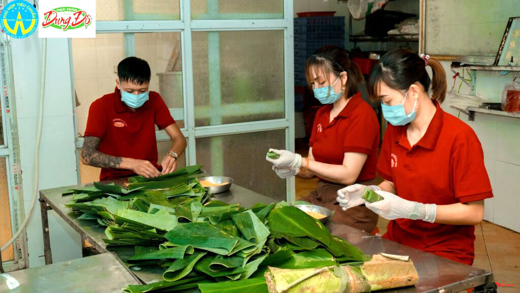 • Bao gói: lá chuối hoặc màng bọc thực phẩm