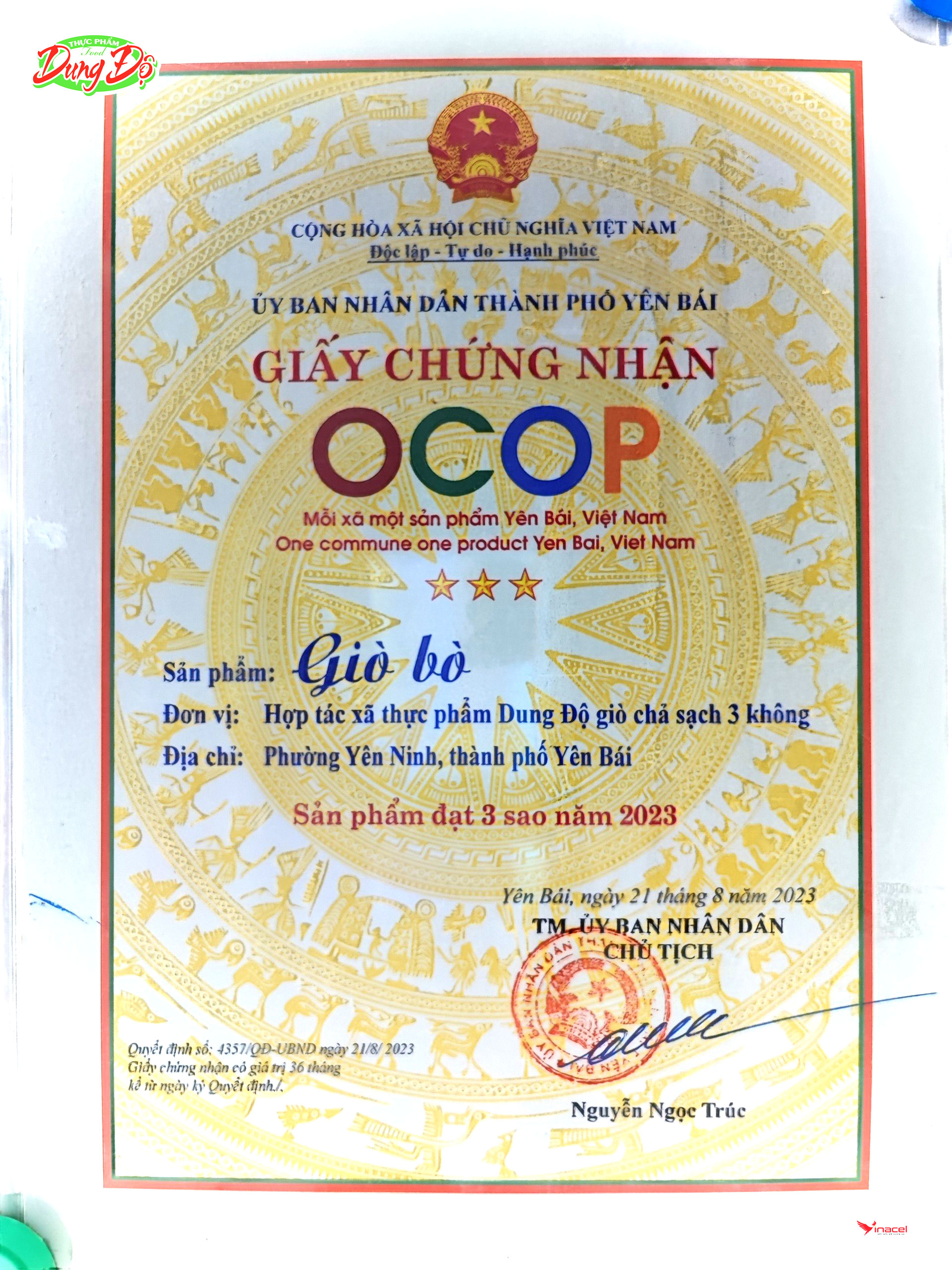 Lần đầu tiên thưởng thức Giò bò Dung Độ, tôi không thể không ấn tượng bởi sự khác biệt rõ rệt về hương vị. Mỗi miếng giò mềm mịn, vừa dai vừa ngọt, được làm từ những nguyên liệu tươi ngon, được chọn lọc kỹ càng. Và điều đặc biệt là giò bò Dung Độ đã đạt danh hiệu OCOP 3 sao – một dấu ấn quan trọng trong việc khẳng định chất lượng sản phẩm.