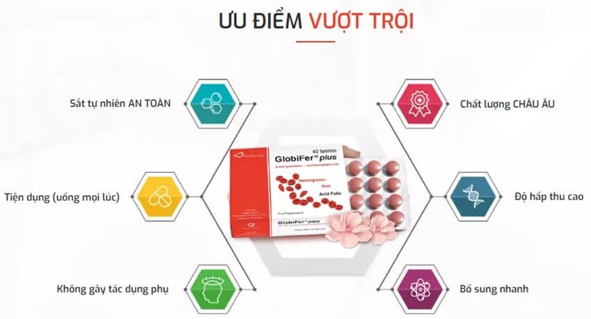 Thuốc sắtGlobifer Plus là môt sản phẩm bổ sung tự nhiên với công thức sắt liều thấp độc đáo, có chứa cả sắt heme và sắt không heme. Sản phẩm có những tác dụng chính như: