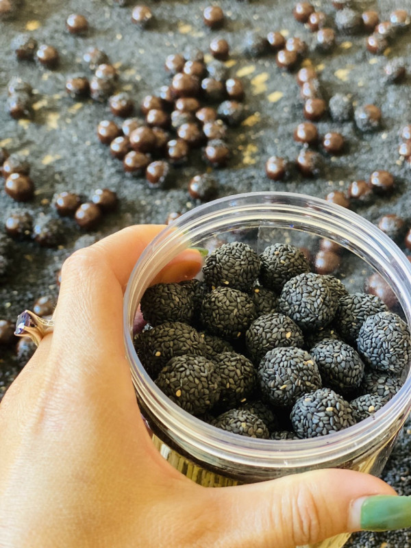 Lưu ý: bạn có thể dùng máy xay để xay hà thủ ô chín rồi trộn với mật ong, tạo viên lăn qua mè đen rồi sấy khô.