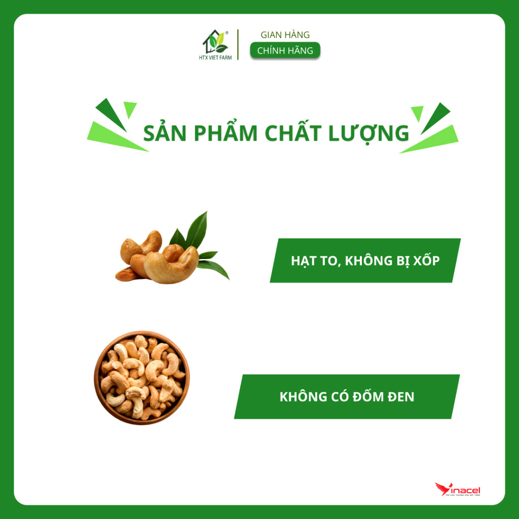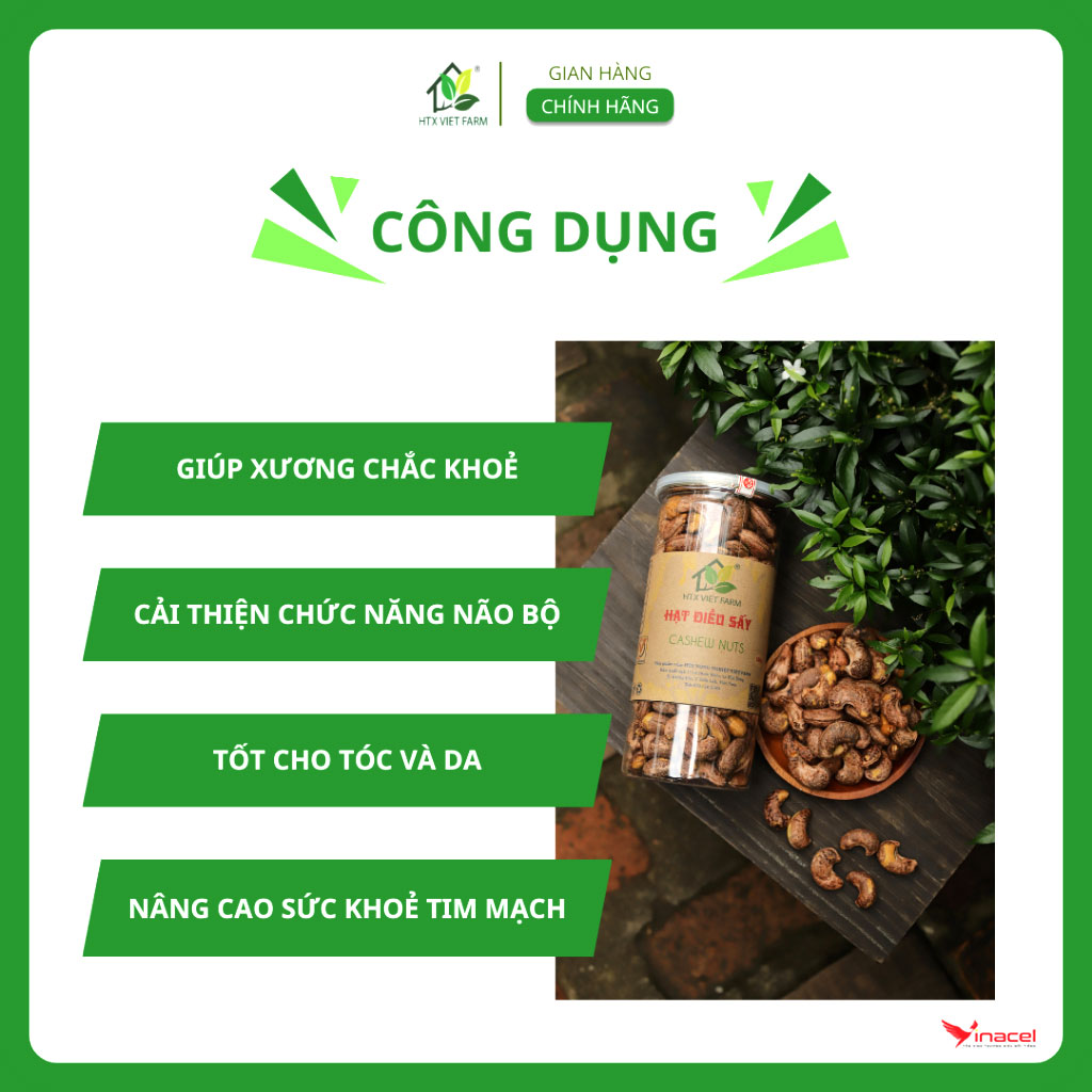 Hạt Điều Nhân sấy rang được sản xuất theo quy trình khép kín không sử dụng bất cứ chất phụ gia, bảo quản nào, đảm bảo giữ được hương vị đặc trưng và thành phần dinh dưỡng của hạt sen. Hạt điều sấy được đóng gói tiện dụng, thuận lợi mang theo mỗi khi đi xa hay dành làm quà tặng.