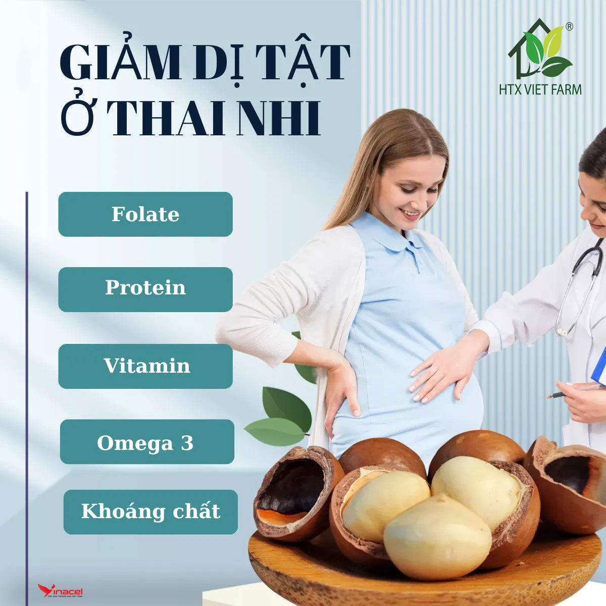 • Mẹ bầu sử dụng hạt macca trong quá trình mang thai có thể giảm tỉ lệ dị tật ở thai nhi đồng thời cung cấp chất dinh dưỡng phát triển não bộ cho em bé.