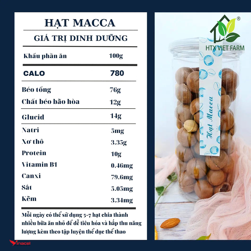 Hạt macca là loại hạt giàu calo, có chứa nhiều chất béo, vitamin và các loại khoáng chất thiết yếu có lợi cho sức khỏe. Một ounce (28 gram) hạt macca sẽ cung cấp: