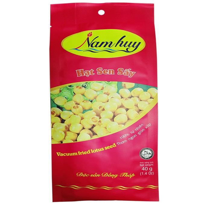 Với quy trình áp dụng công nghệ sấy chân không tiên tiến, sự lựa chọn tỉ mỉ cẩn thận từ những hạt sen to tròn kết hợp với các phụ gia chiết xuất từ thiên nhiên như: dầu thực vật, đường mạch đã tạo nên sản phẩm “Hạt sen sấy” có vị ngọt thanh, giòn xốp, thơm lừng. Đặc biệt giúp lưu giữ sự thuần khiết lâu dài hương vị đặc trưng của sen. Công ty luôn ưu tiên hàng đầu cho chất lượng, sản phẩm “Hạt sen sấy” thương hiệu Nam Huy được chứng nhận theo tiêu chuẩn vệ sinh an toàn thực phẩm, sử dụng nguyên liệu tươi không hóa chất, mang đến sự yên tâm tuyệt đối cho khách hàng. Sự kết hợp hoàn hảo khi dùng sen sấy với các loại trà: trà tâm sen, trà mạn, trà nhài…. làm không khí chuyện trò quanh ấm trà thêm vui hơn. Thú vị hơn sau khi thưởng thức hết hạt sen, người dùng sẽ cảm thấy vị ngọt nhẹ còn vương đọng lại trên đầu lưỡi. Đến nay “Hạt sen sấy Nam Huy” đã có mặt thị trường trong và ngoài nước với hơn 50 nhà phân phối.