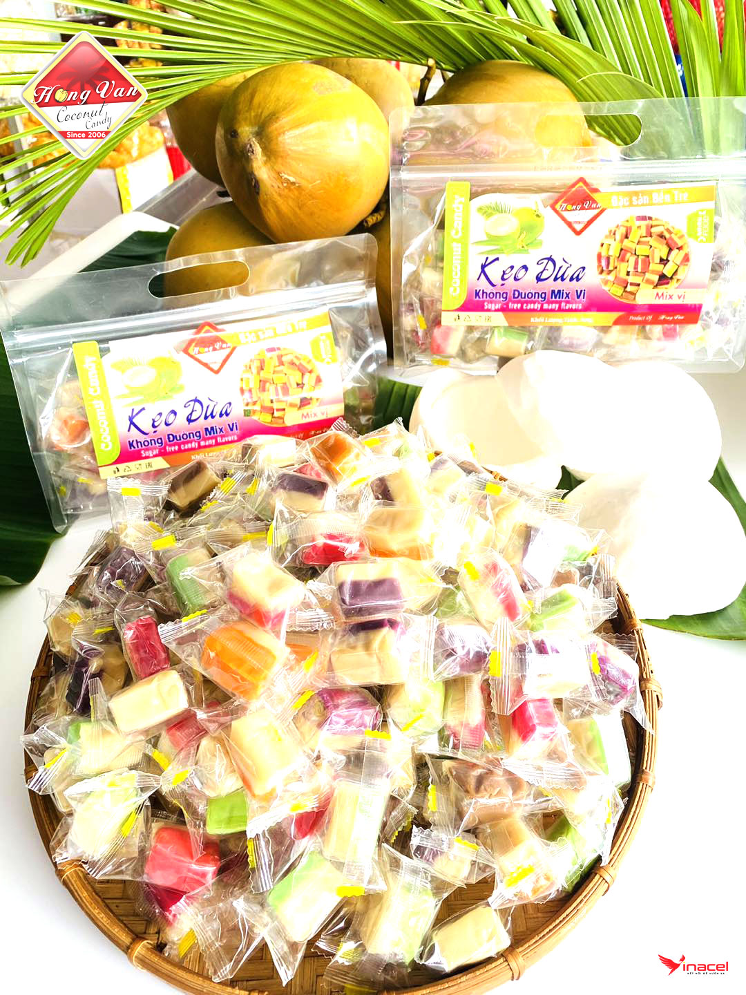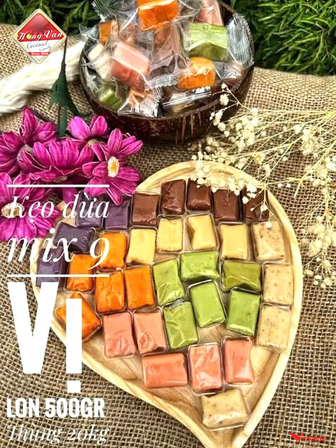Mô tả sản phẩm Kẹo Dừa Dẻo Thập Cẩm Hồng Vân