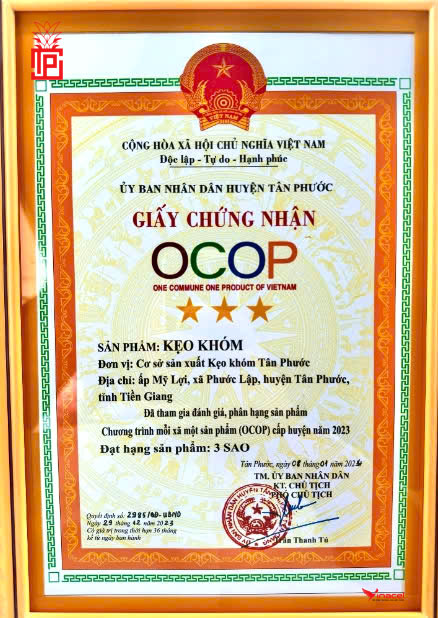 Kẹo khóm là một trong những sản phẩm đặc trưng của huyện Tân Phước và đã đạt chứng nhận OCOP. Thời gian qua, huyện đã và đang đẩy mạnh phát triển du lịch nông nghiệp gắn với sản phẩm OCOP, những sản phẩm thế mạnh, chủ lực của Tân Phước; du khách sẽ được trải nghiệm tham quan các cơ sở sản xuất, mua sắm sản phẩm OCOP. Trong quá trình tham quan, mua sắm sản phẩm kẹo khóm, du khách sẽ được thông tin về những điểm đặc biệt của sản phẩm như: nguồn nguyên liệu, quá trình chế biến, sản xuất kẹo khóm và cả giá trị sử dụng, giá trị văn hóa tinh thần...