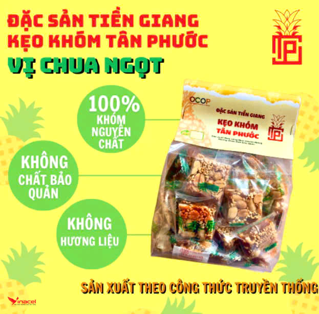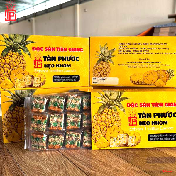 Kẹo khóm Tân Phước là một sản phẩm đặc biệt từ vùng Tiền Giang, hội tụ đầy đủ hương vị của vùng đất phèn chua cùng tâm huyết và sự khéo léo của người thợ.