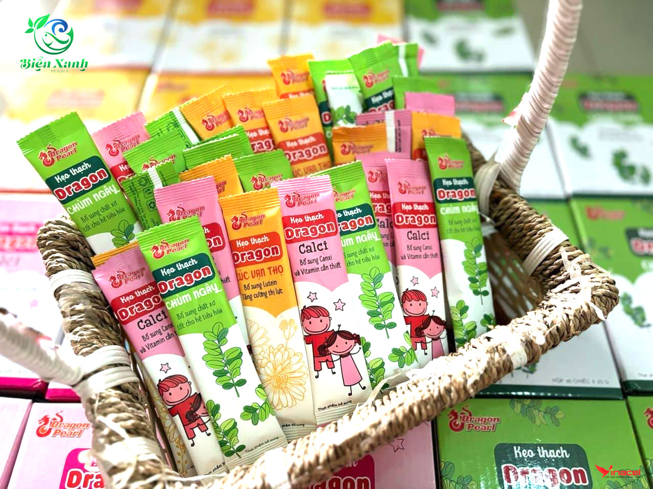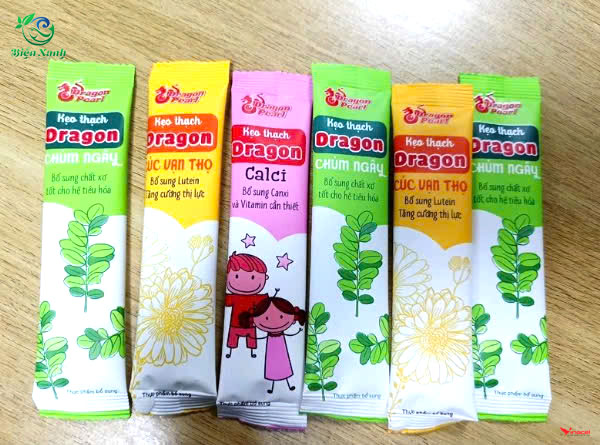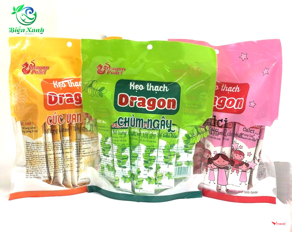 Kẹo thạch DRAGON bổ sung Calci, Lutein-giúp sáng mắt, chùm ngây- giúp tiêu hoá.SP được làm hoàn toàn bằng hương liệu và nguyên liệu nhập khẩu Singapore rất thơm ngon & bổ dưỡng.