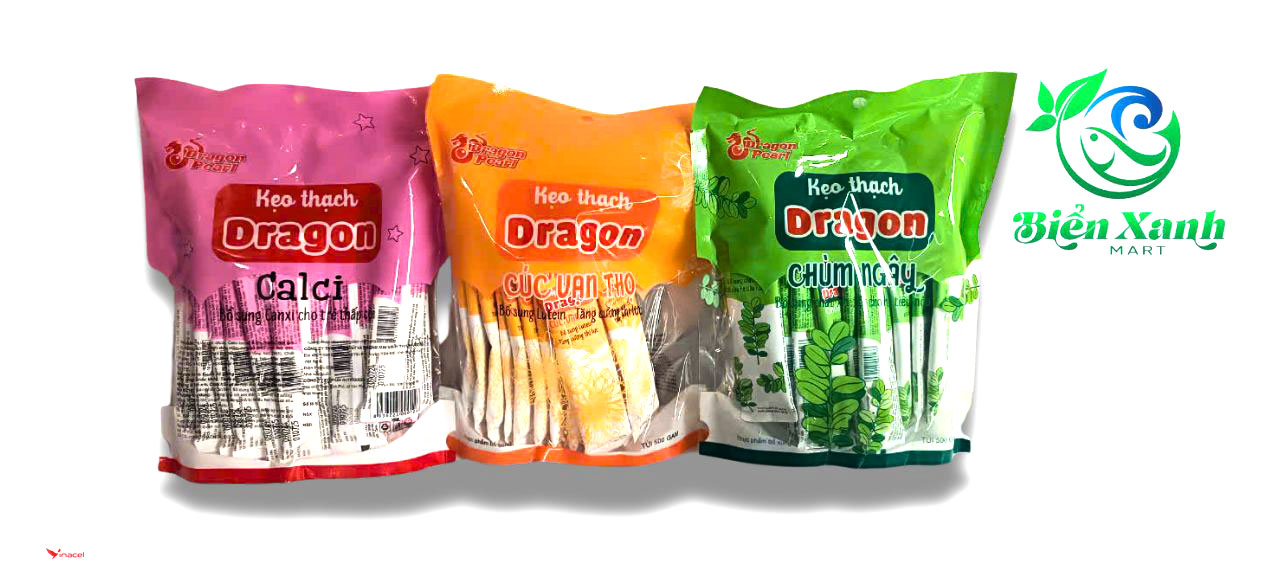 Kẹo Thạch Dragon được sản xuất bởi Vinh Thịnh Vượng Group giúp bổ sung các vi chất thiết yếu cho trẻ, sản phẩm có hương vị thơm ngon, bổ dưỡng. Kẹo thạch Dragon gồm 3 loại sau: