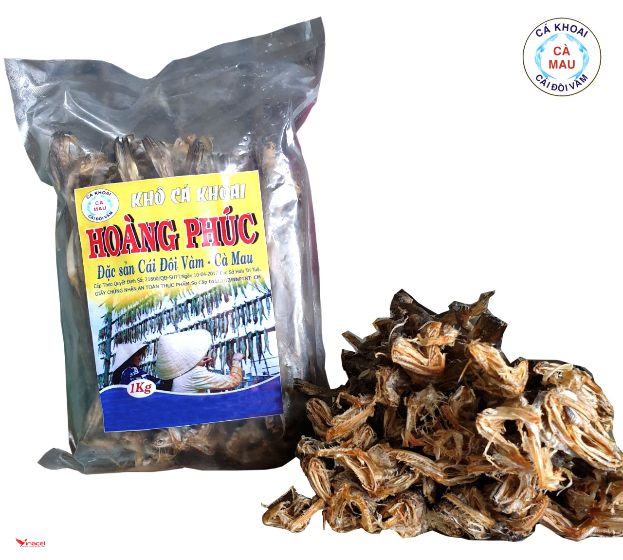 Khô Cá Khoai Hoàng Phúc ngon nức tiếng không chỉ bởi kinh nghiệm của những bậc tiền nhân từ thời khai hoang mở cõi, mà còn bởi nguyên liệu được thu mua trực tiếp từ các tàu cá ở Kiên Giang và các tàu từ Rạch Tàu, Rạch Gốc, huyện Ngọc Hiển. Thịt cá khoai trắng ngần, nạc và khá mềm nên làm khô rất hợp. Có rất nhiều thực khách yêu mến hương vị của món khô cá khoai bởi vị ngọt và mềm. Người ta thường nướng khô để thưởng thức khô cá dai dai, kèm vị mắm me tạo nên một hương vị ẩm thực khó quên. Đó cũng chính là lý do khiến cho dân sành ăn thích đặc sản bình dân này.
