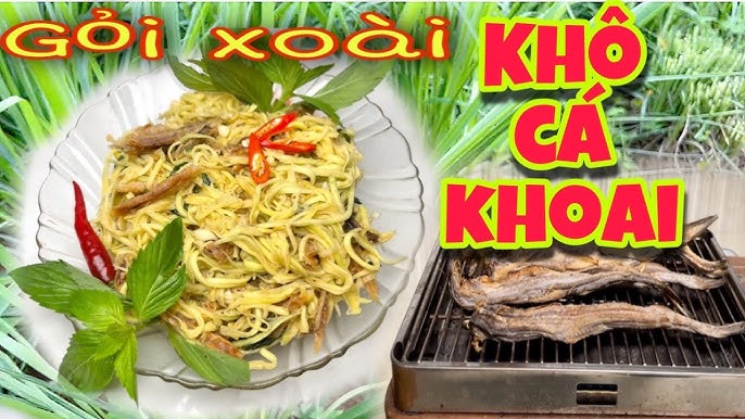 Một cách chế biến khác của khô cá khoai cũng không kém phần hấp dẫn là gỏi. Khô cá khoai được nướng sơ qua bếp than hồng, bẻ thành từng miếng nhỏ. Xoài, cóc gọt vỏ, nạo sợi. Trộn khô cá khoai với xoài, cóc vừa nạo, thêm nước mắm, đường, mì chính, đảo thật đều. Cuối cùng thêm ít ớt tươi và rau thơm cắt nhỏ, trộn đều và thưởng thức.