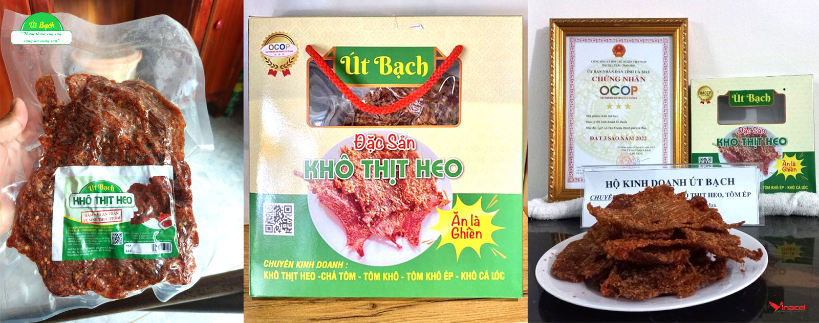 Khô thịt heo Út Bạch là một đặc sản của vùng sông nước Cà Mau, được ưa chuộng bởi hương vị đậm đà, thơm ngon, dân dã. Sản phẩm không chỉ mang lại trải nghiệm ẩm thực khó quên cho những ai đã từng nếm thử, mà còn là món quà ý nghĩa cho người thân, bạn bè.