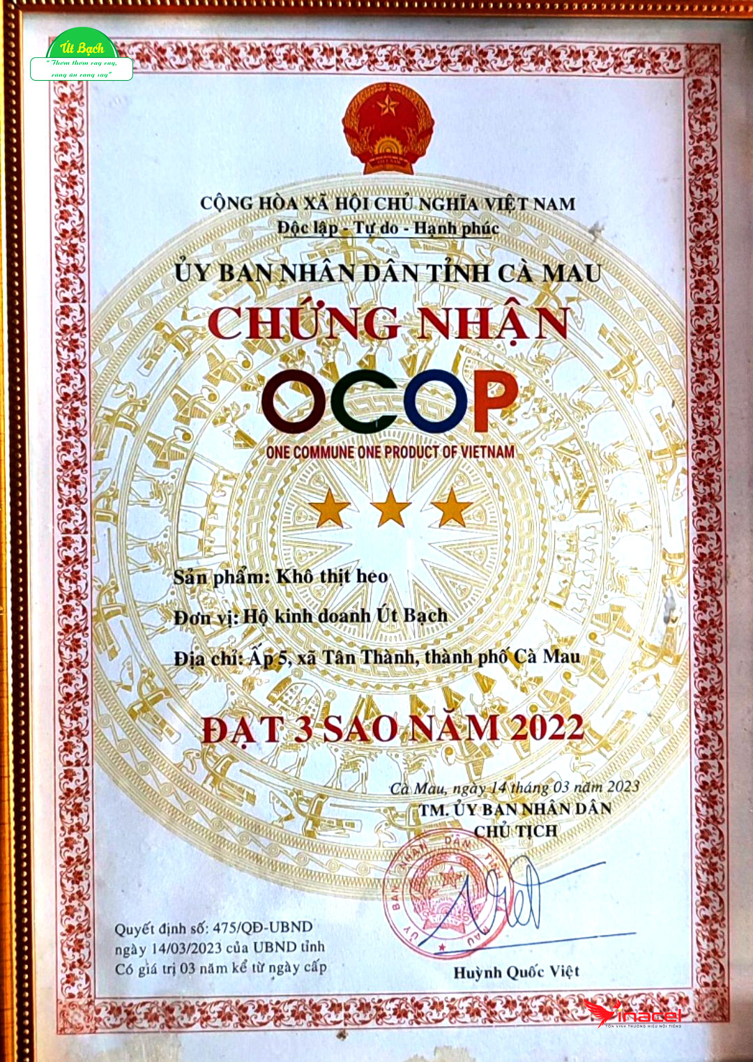Nhận thấy được người dân địa phương rất ưa chuộng các sản phẩm khô từ thịt, qua vài lần được thử và cảm nhận hương vị đặc trưng của một loại khô thịt trâu - là đặc sản nổi tiếng của Cà Mau, Hộ kinh doanh Út Bạch đã sớm nghiên cứu thành công cách thức làm khô thủ công, thay thế thịt trâu bằng thịt heo với ưu điểm giá thành rẻ hơn nhưng lại giữ được hương vị tương tự. Qua vài lần thử nghiệm và hoàn thiện hương vị, sản phẩm khô thịt heo của Hộ kinh doanh dần được đón nhận bởi người dân trong vùng và trở thành món ăn đặc sản Cà Mau, nổi tiếng khắp các tỉnh lân cận. Năm 2022, cơ sở Út Bạch được chứng nhận đủ điều kiện an toàn thực phẩm sản phẩm thịt khô, khẳng định sản phẩm Khô Thịt Heo được sản xuất theo quy trình đúng quy chuẩn, đảm bảo an toàn vệ sinh thực phẩm.