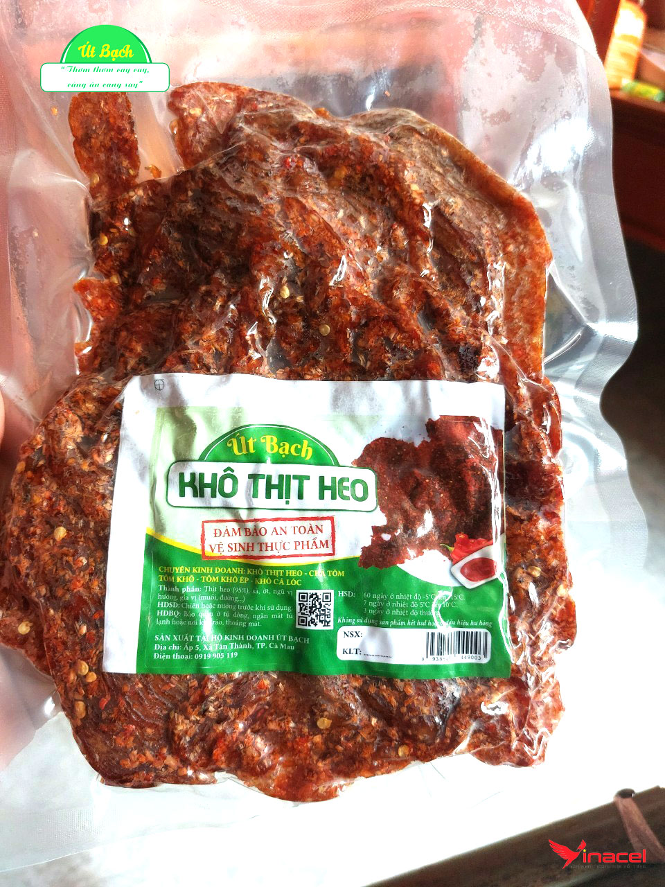• Khi mua khô thịt heo Út Bạch từ nhà cung cấp chính hãng, bạn hoàn toàn có thể yên tâm về nguồn gốc xuất xứ rõ ràng. Sản phẩm được sản xuất từ thịt heo sạch, nuôi tự nhiên tại vùng Cà Mau và đã qua quy trình kiểm định chất lượng nghiêm ngặt.