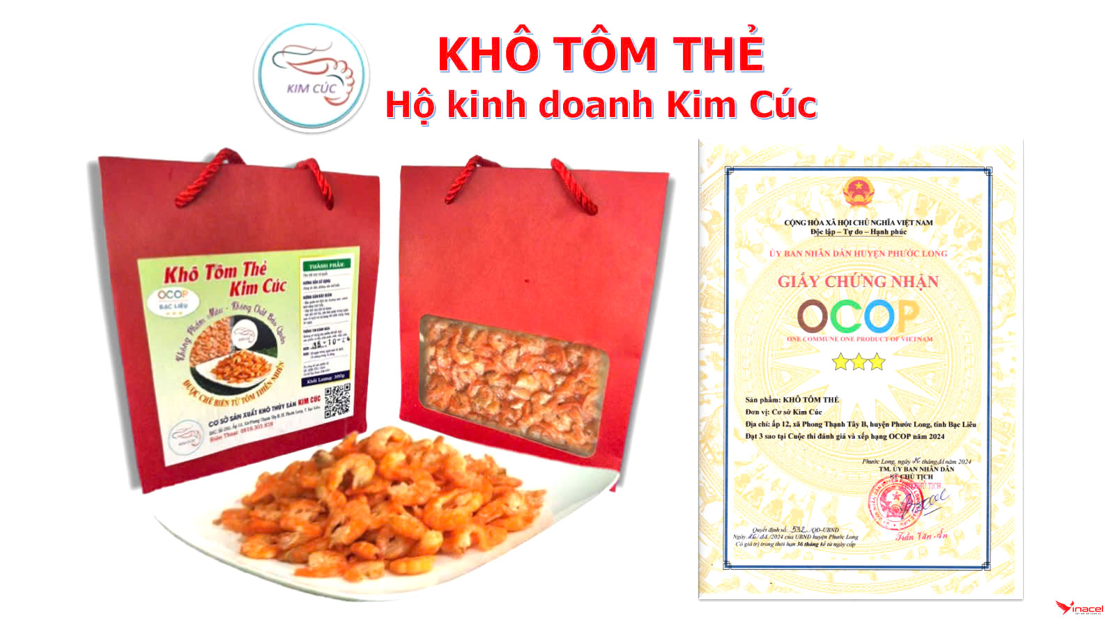 Khô Tôm Thẻ Kim Cúc không chỉ ngon mà còn đảm bảo vệ sinh an toàn thực phẩm, không sử dụng phụ gia khi chế biến nên được người tiêu dùng ưa chuộng.