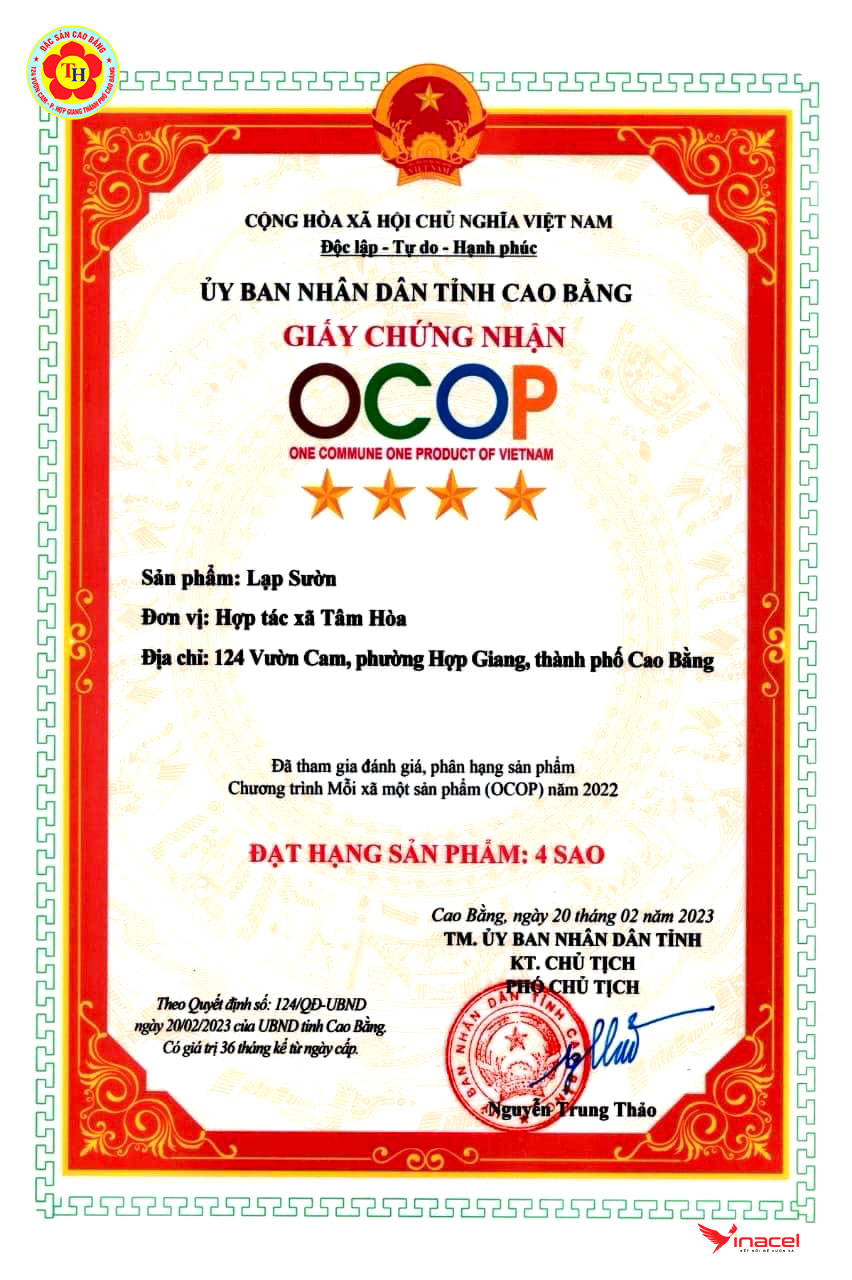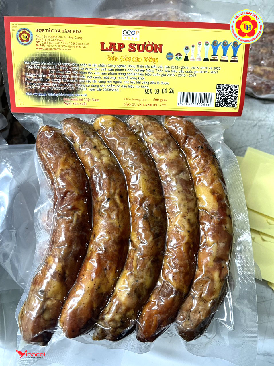 Sản phẩm lạp sườn Cao Bằng của HTX Tâm Hòa được UBND tỉnh bình chọn là 1 trong 12 sản phẩm công nghiệp nông thôn (CNNT) tiêu biểu năm 2012. Lạp sườn là món ăn truyền thống lâu đời của người Cao Bằng được nhiều người ưa thích. Hương vị lạp sườn Cao Bằng có những điểm khác biệt: Đó là lạp sườn tươi, có vị ngon đậm đà của thịt nạc vai ướp các loại gia vị, vị chua chua, thơm ngậy của thịt hun khói và lá, quả mác mật, thêm một chút vị thơm của củ gừng núi, dai dai của vỏ lòng non bào mỏng và đặc biệt là không dùng chất bảo quản.