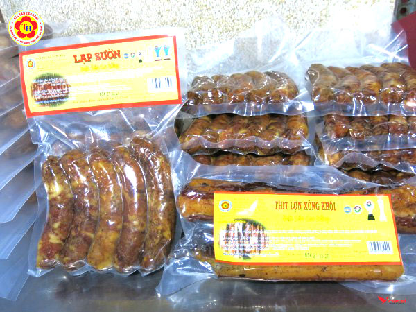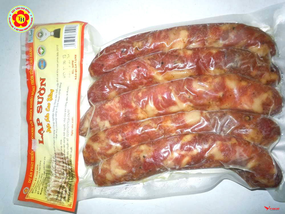 Quy trình sản xuất lạp sườn của HTX Tâm Hòa | Lạp sườn là món ăn truyền thống của người Cao Bằng và được rất nhiều người yêu thích bởi hương vị đặc trưng không nơi nào có được. Được làm từ thịt lợn bản hun khói, gừng núi. Vỏ được làm từ lòng non của lợn bản. Vị mặn thoáng, vị chua rất nhẹ của rượu ngô lên men đượm khói bếp , phảng phất một chút vị thơm của các gia vị chỉ có ở núi rừng Khinh Phia , quả mắc mật…