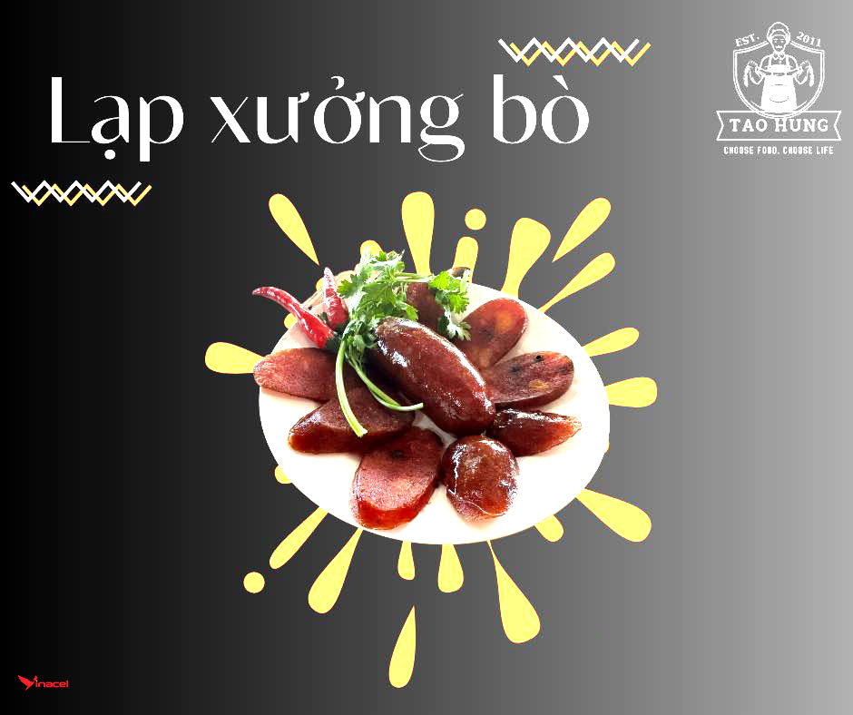 Lạp xưởng bò là một trong số những món ăn truyền thống nhưng có phần đặc biệt và tươi mới hơn. Với phần vỏ dai dai, sần sật cùng thịt bò băm đậm đà, kích thích vị giác. Tất cả hòa quyện với nhau tạo sức hút khó cưỡng lại được.