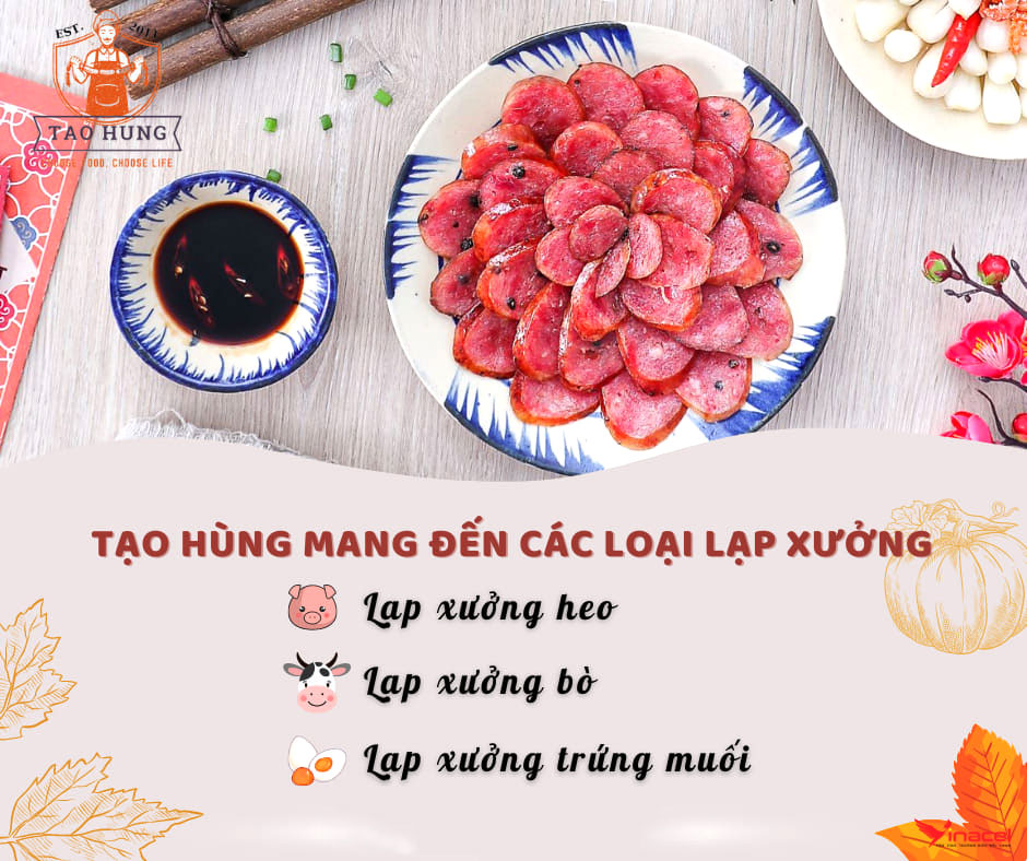 Với công thức chế biến riêng biệt các sản phẩm Lạp xưởng Gia Truyền Tạo Hùng hứa hẹn sẽ mang đến hương vị đậm đà, đặc biệt đảm bảo an toàn sức khỏe của người tiêu dùng sử dụng nguyên liệu tự nhiên 100%, nói không với chất bảo quản và phẩm màu độc hại.