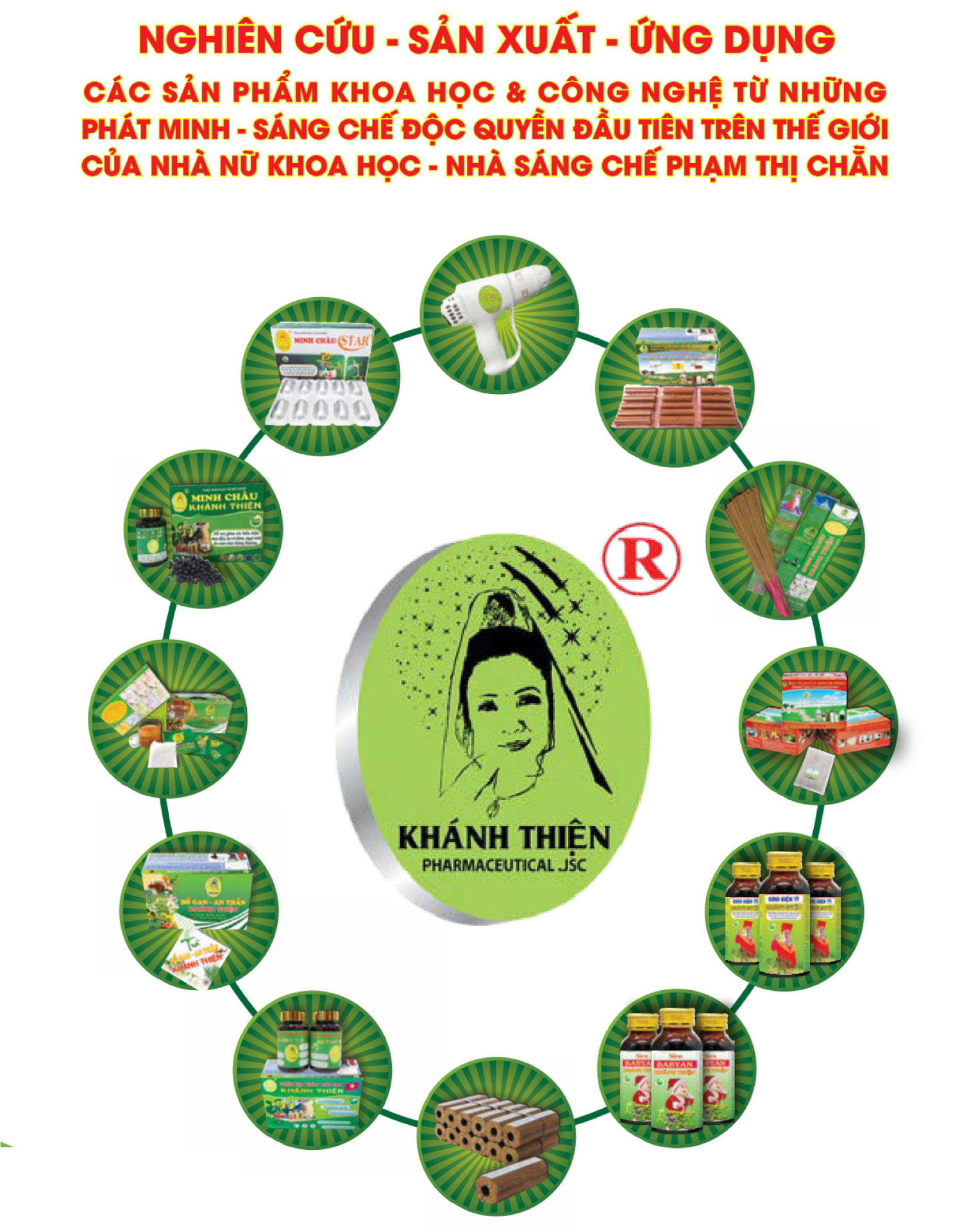 Trải qua hơn 20 năm nghiên cứu, Khánh Thiện đã cho ra đời 12 Sáng chế độc quyền đầu tiên trên Thế Giới góp phần nâng cao chất lượng cuộc sống của người dân Việt Nam và nâng tầm vị thế thương hiệu Việt trên trường Quốc tế. Khánh Thiện luôn tâm nguyện được cống hiến để nhân dân được hưởng lợi từ các Sáng chế của Nước nhà.