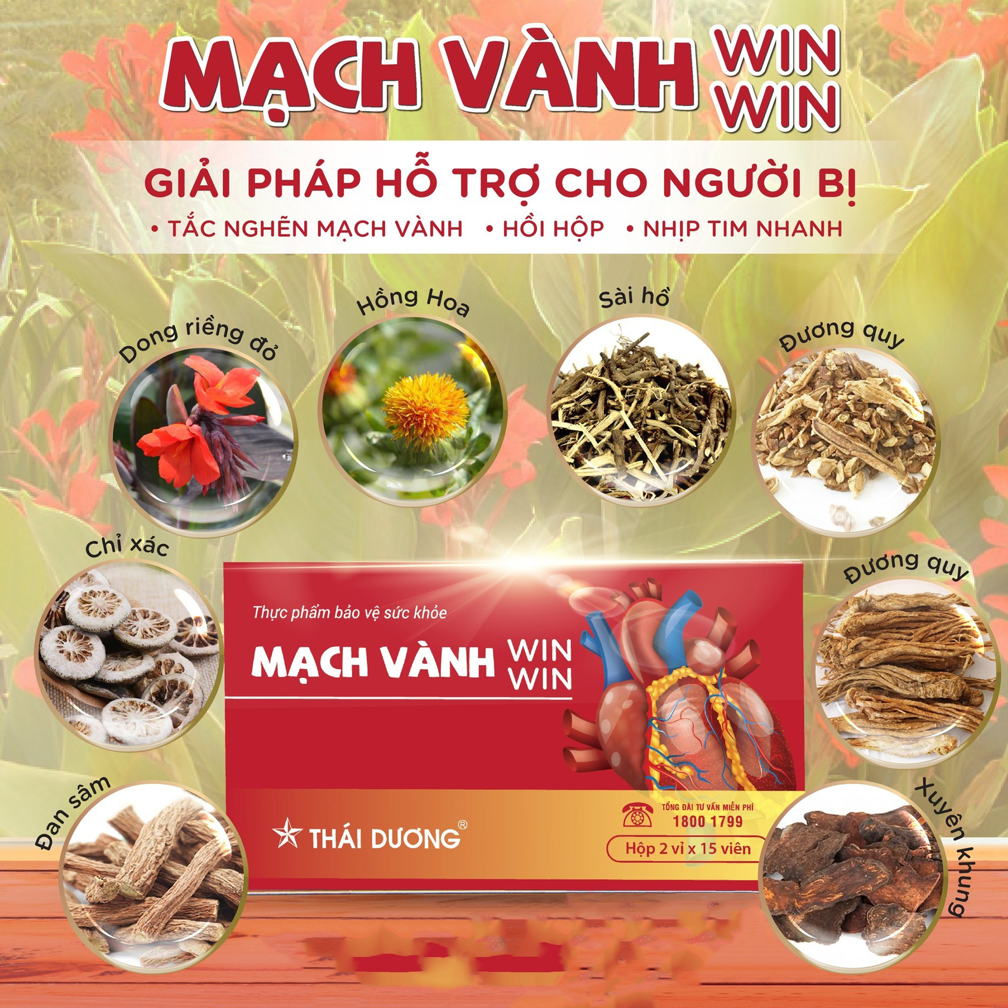 Để đồng hành trong quá trình hỗ trợ cải thiện tình trạng bệnh mạch vành, Công ty cổ phần Sao Thái Dương đã nghiên cứu và cho ra mắt viên uống Mạch Vành Win Win chiết xuất từ các dược liệu Đông y lành tính. Với nhiều năm kinh nghiệm trong lĩnh vực sản xuất sản phẩm chăm sóc sức khỏe, Sao Thái Dương mong muốn tạo ra sản phẩm có chất lượng nhất đến quý khách hàng, điển hình như viên uống Mạch Vành Win Win.