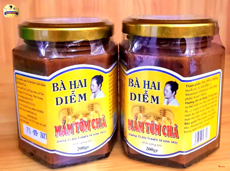Mắm Tôm Chà Bà Hai Diễm được chế biến từ những tôm thiên nhiên tại Gò Công, công thức chế biến truyền thống lâu đời, không sử dụng hóa chất hay chất bảo quản, trải qua nhiều công đoạn mới cho ra được một sản phẩm hoàn hảo, một hương vị không thể lẫn vào đâu được. Mắm Tôm Chà đã chế biến sẵn, dùng ăn liền hoặc pha thêm tỏi, ớt, chanh để chấm các món ăn thịt luộc, cá hấp, rau luộc, trái cây...