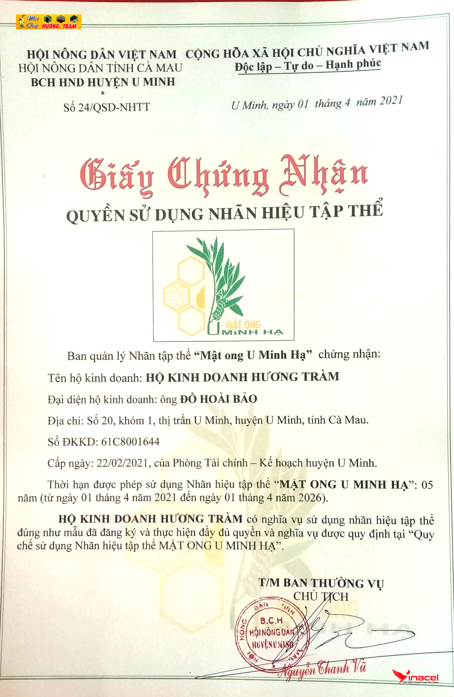 Từ đó, tạo điều kiện cho đàn ong khỏe mạnh cho lượng mật nhiều, chất lượng tốt, mật ong nguyên chất, an toàn thực phẩm… Trên cơ sở đó, cơ sở cam kết đưa ra thị trường khối lượng lớn Mật Ong Hương Tràm nguyên chất, được người tiêu dùng rất ưa chuộng và đánh giá là đặc sản địa phương, có nguồn gốc, xuất xứ rõ ràng, có hương vị mật ong bông tràm đặc trưng, màu vàng nhạt và độ ngọt vừa phải.