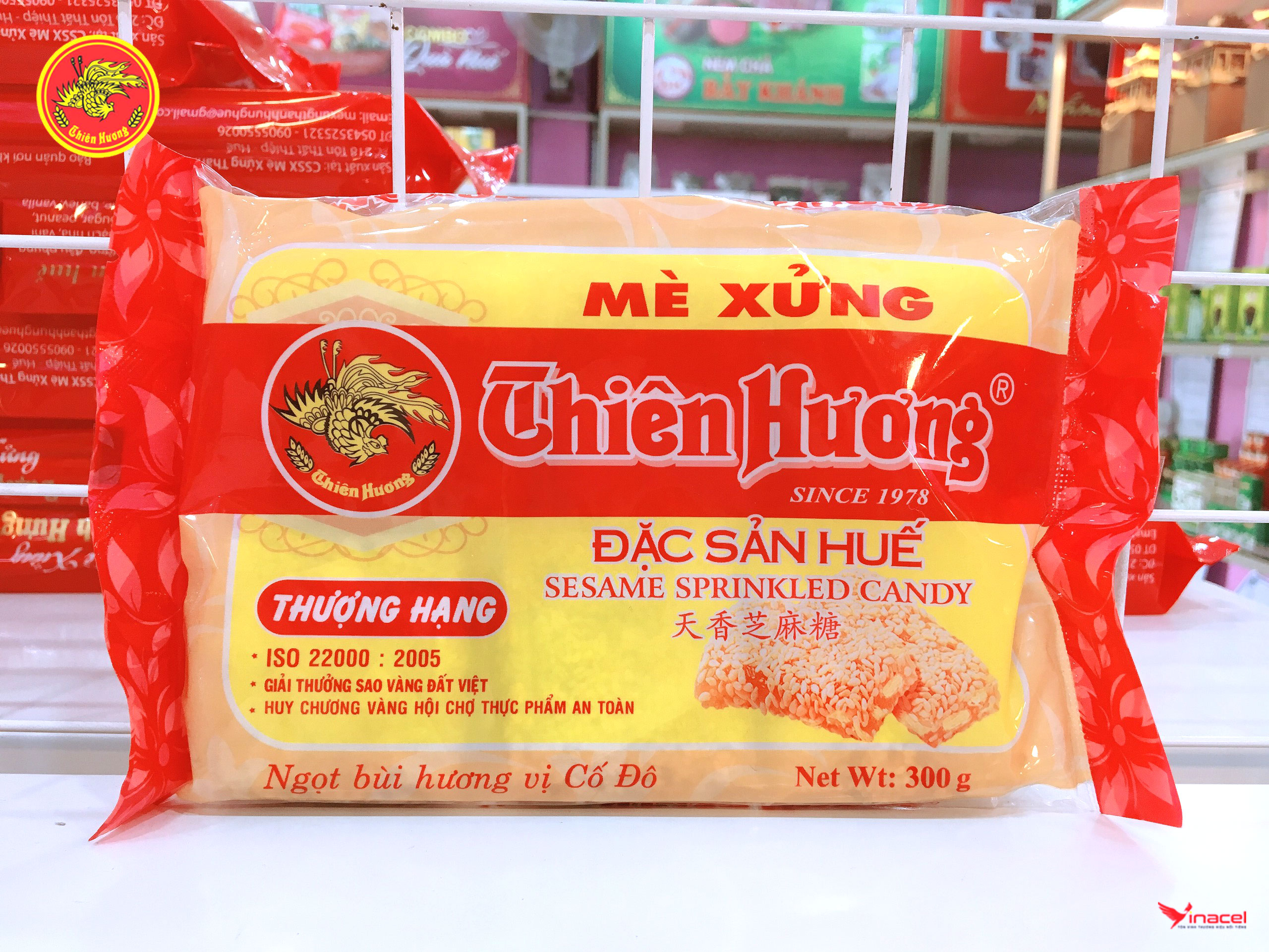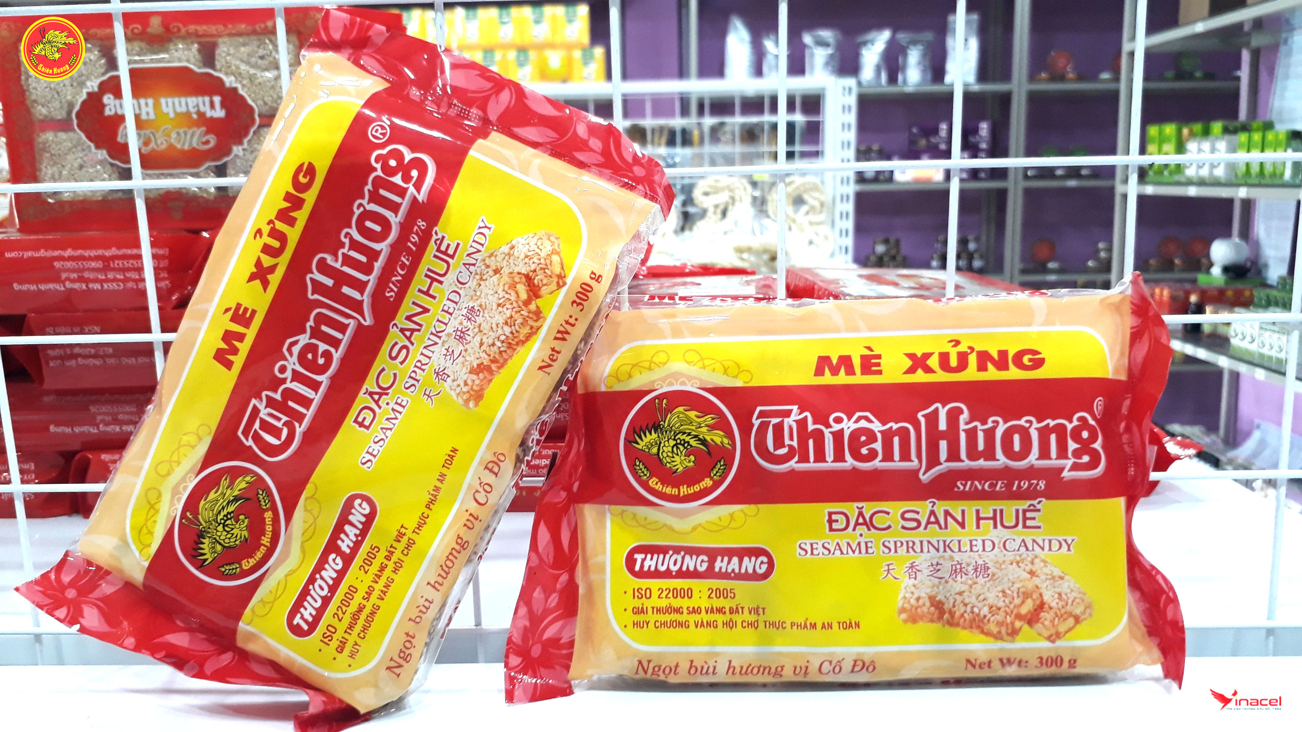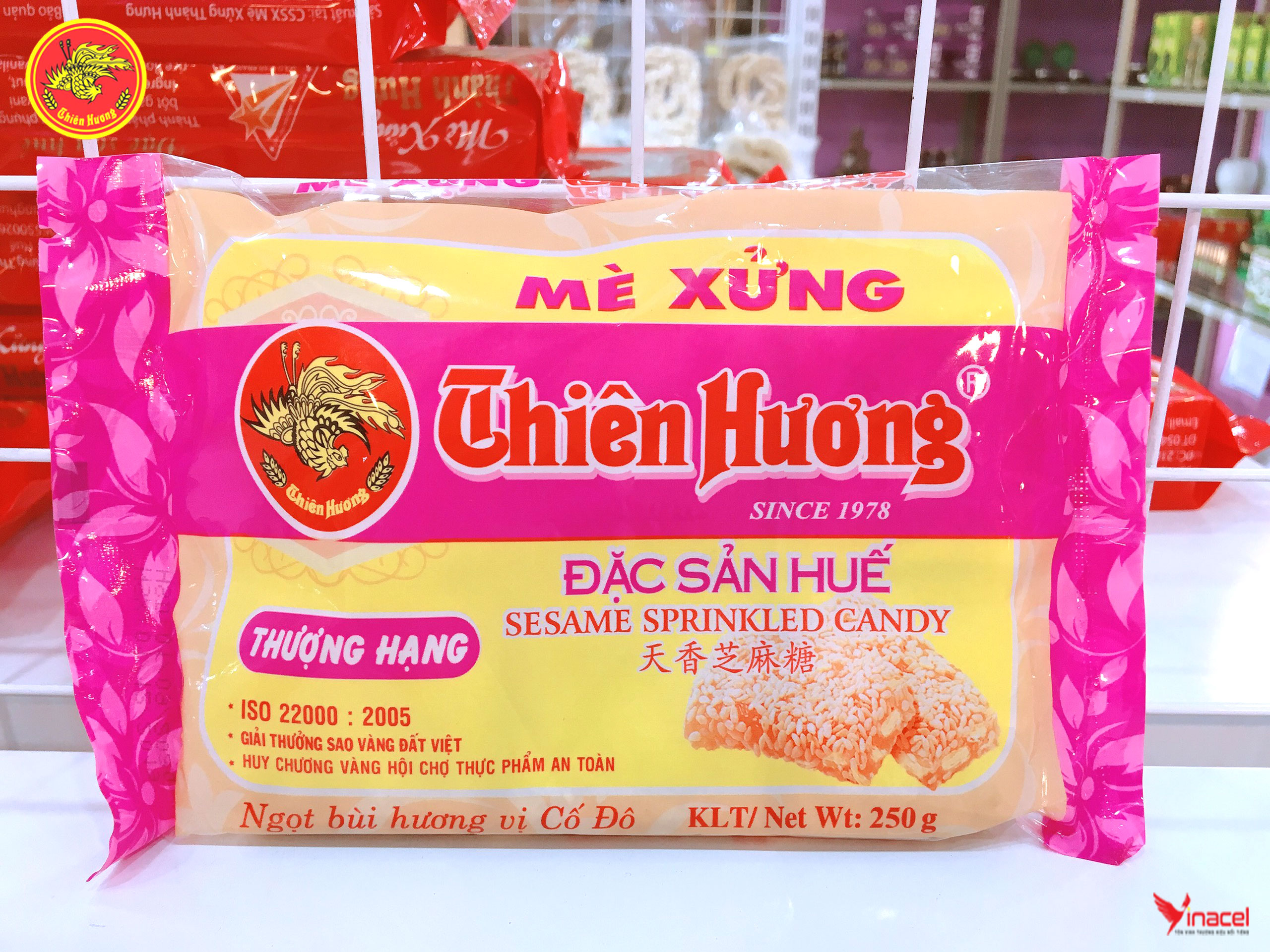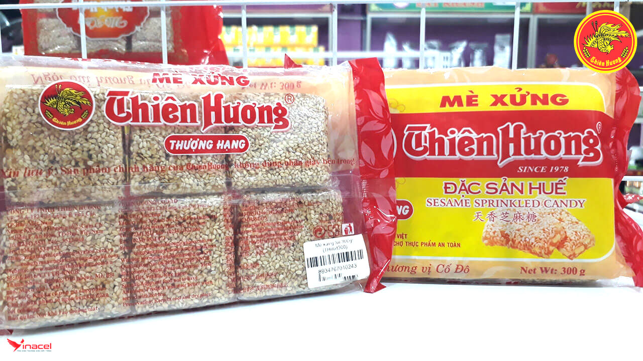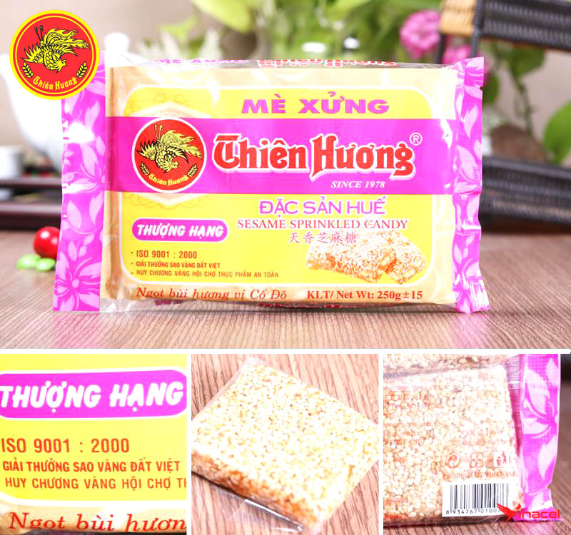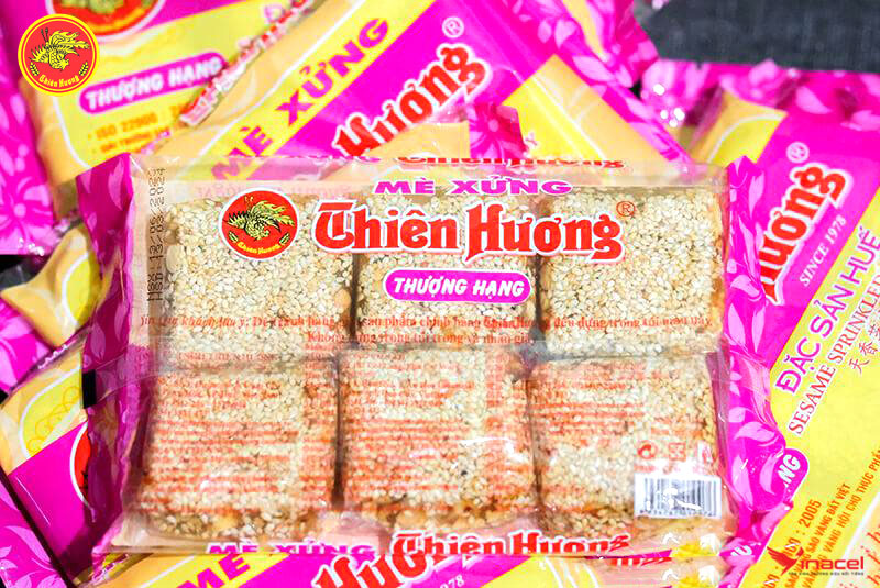 • Mè xửng Thiên Hương thượng hạng được đóng túi màu hồng, dễ nhận biết. Bao gồm 6 miếng nhỏ trong một gói. Hương vị thơm ngon, đạt chất lượng và an toàn vệ sinh thực phẩm.