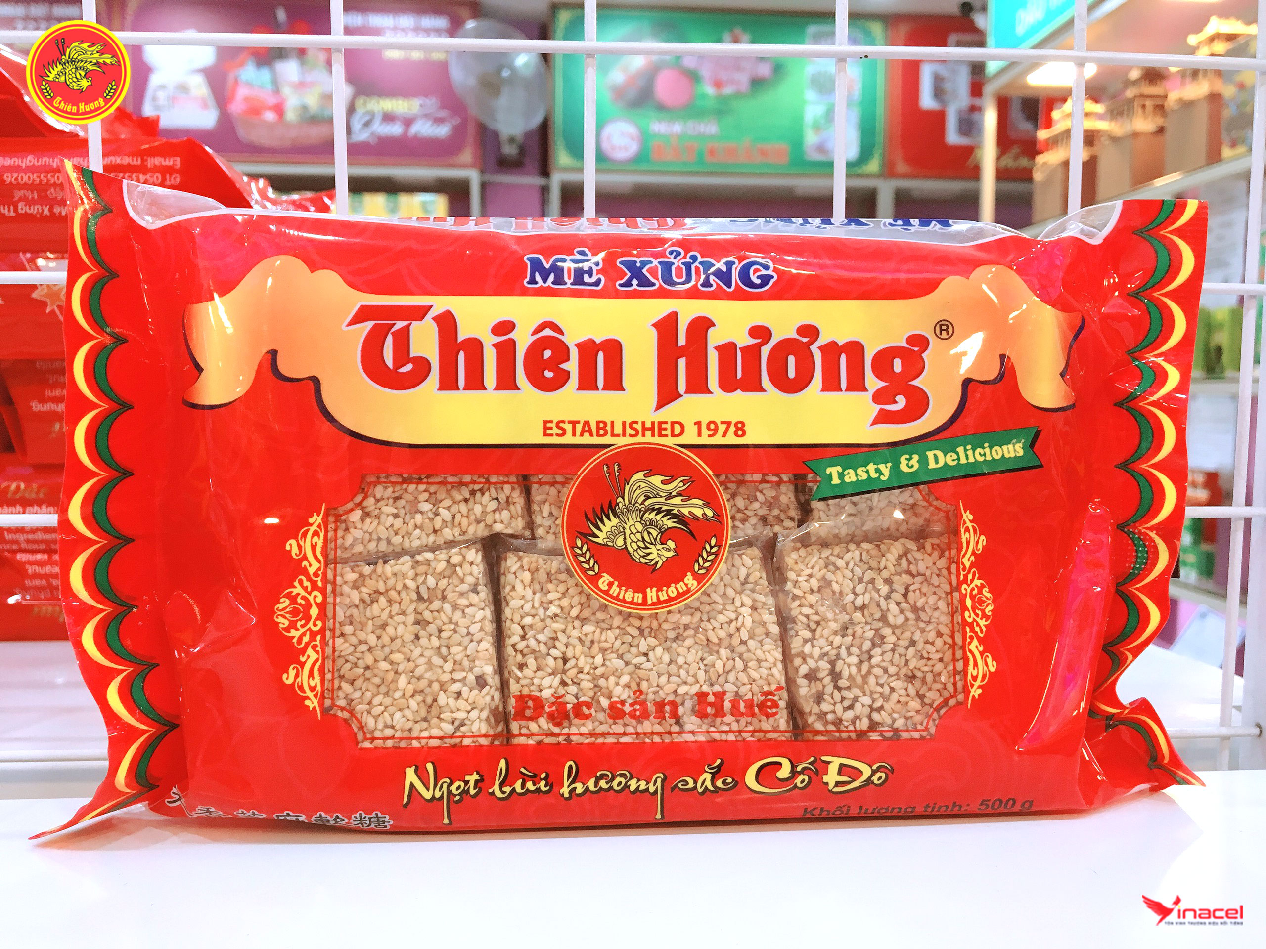 Thiên Hương là thương hiệu mè xửng phổ biến, nổi tiếng bậc nhất xứ Huế. Thành lập từ năm 1978, Công ty TNHH Thiên Hương là một sự kết hợp đặc biệt của truyền thống gia truyền trong nghề sản xuất kẹo mè xửng từ năm 1940. Bước vào năm 2004, sứ mệnh mở rộng của công ty đã thúc đẩy họ đầu tư hơn 10 tỷ đồng để xây dựng một nhà máy rộng lớn trên diện tích 6.000 m2 tại cụm công nghiệp Hương Sơ, thuộc trái tim của Thành phố Huế. Mè xửng Thiên Hương được tạo ra bằng việc kết hợp những bí quyết và tinh hoa của nghề sản xuất kẹo mè xửng Huế. Sự đổi mới và phát triển bao gồm các phiên bản đa dạng: Từ kẹo mè xửng dẻo truyền thống, đến mè xửng dẻo với sự cải tiến và mè xửng giòn độc đáo. Đặc biệt, sản phẩm kẹo mè xửng tại đây có độ ngọt vừa phải, vẫn giữ nguyên vị ngon và độ dẻo đặc trưng của kẹo mè xửng Huế, đáp ứng đa dạng khẩu vị của khách hàng.