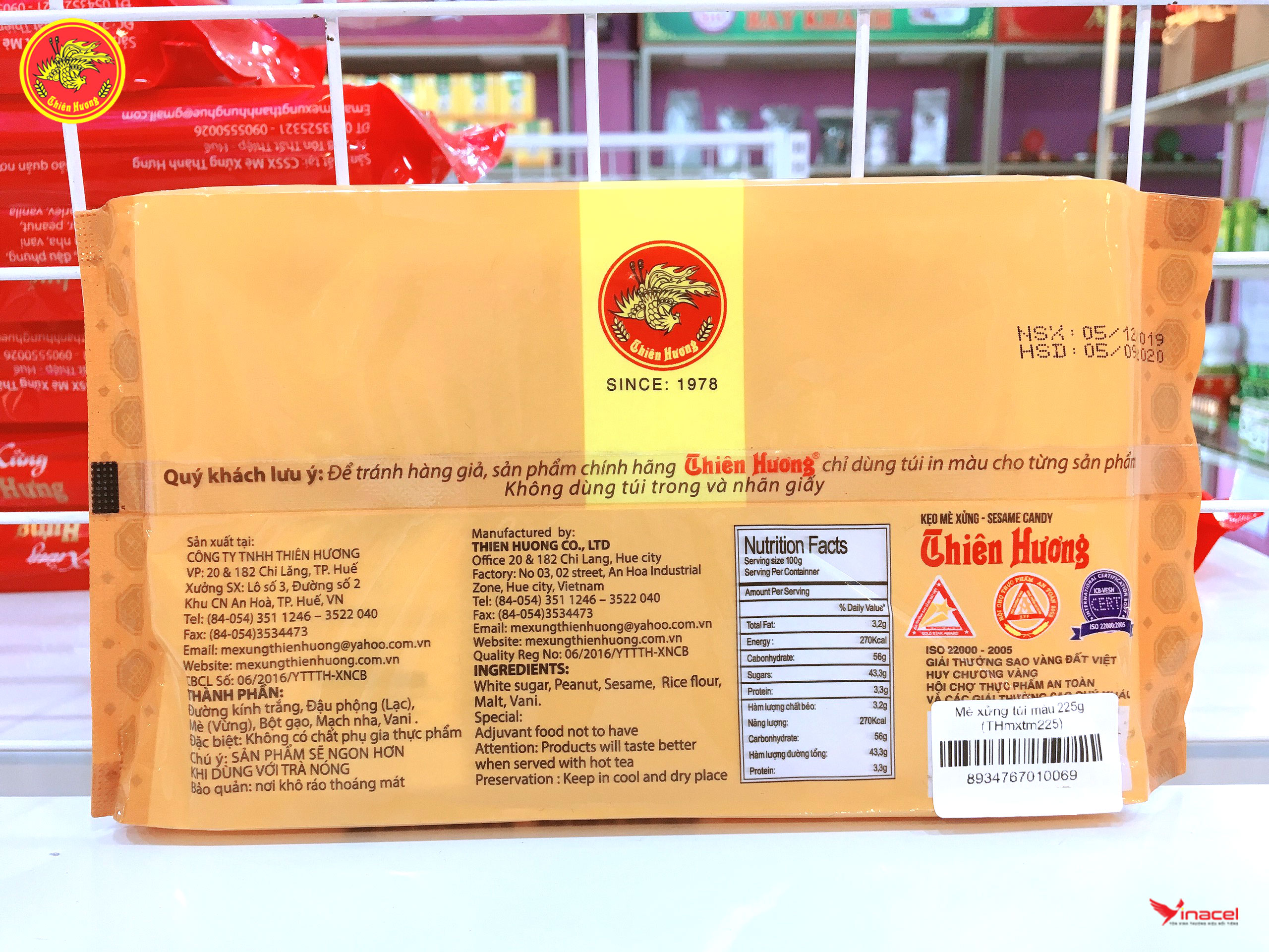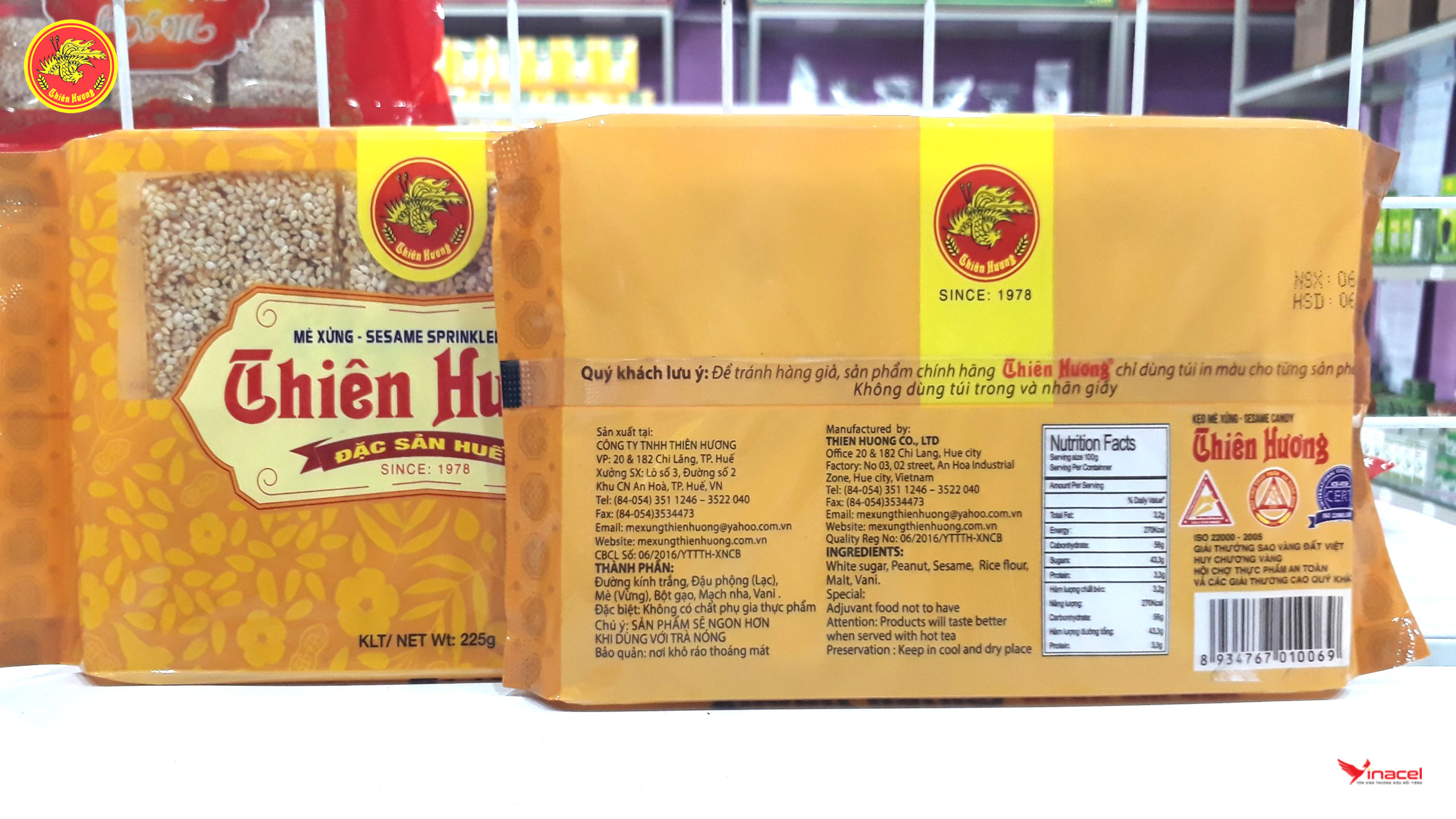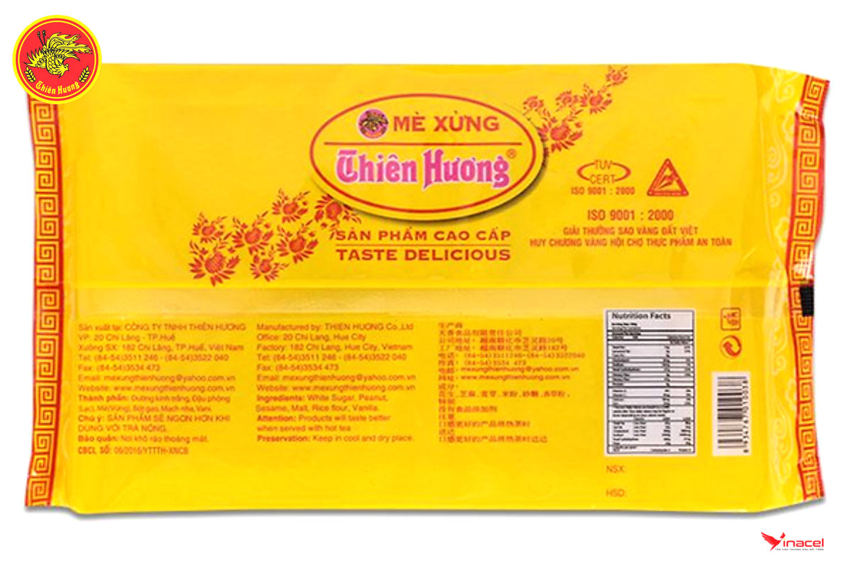 • Mè xửng Thiên Hương túi màu được đóng túi màu vàng, dễ nhận biết. Bao gồm 6 miếng nhỏ trong một gói. Hương vị thơm ngon, đạt chất lượng và an toàn vệ sinh thực phẩm.