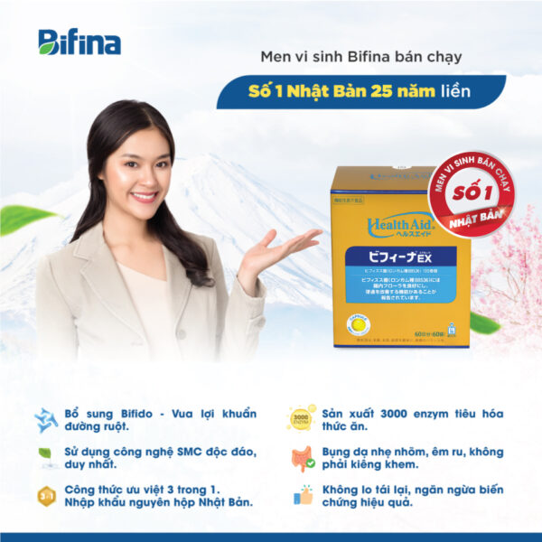 Trong thời đại hiện nay, khi điều trị các rối loạn tiêu hóa, việc bổ sung men vi sinh đã trở thành một phương pháp phổ biến được các bác sĩ đề xuất. Mục tiêu của việc này là cải thiện cân bằng vi khuẩn ruột. Trong số những loại men vi sinh, Bifina là một sản phẩm xuất sắc đến từ Nhật Bản, được sử dụng cho cả người lớn và trẻ em.